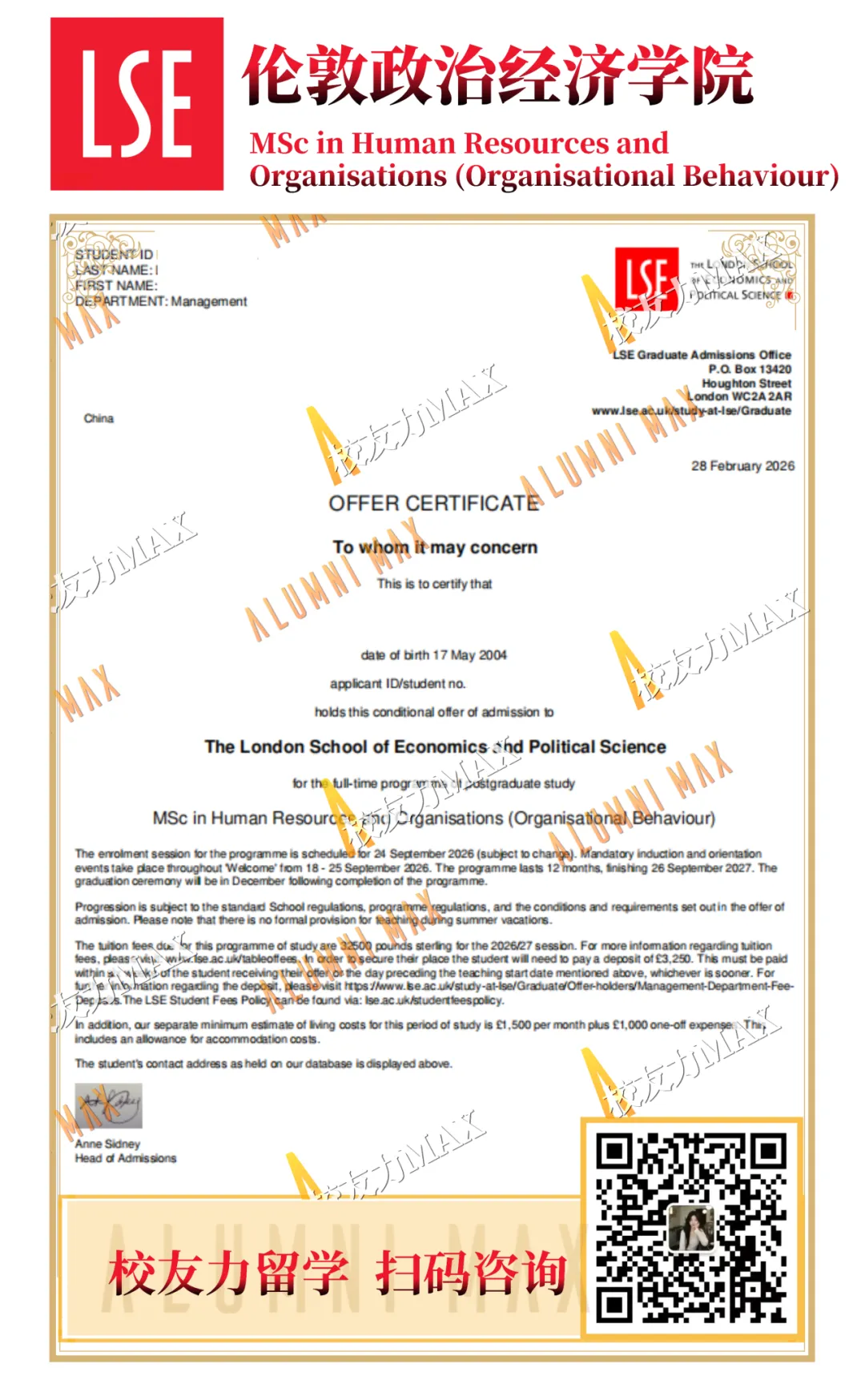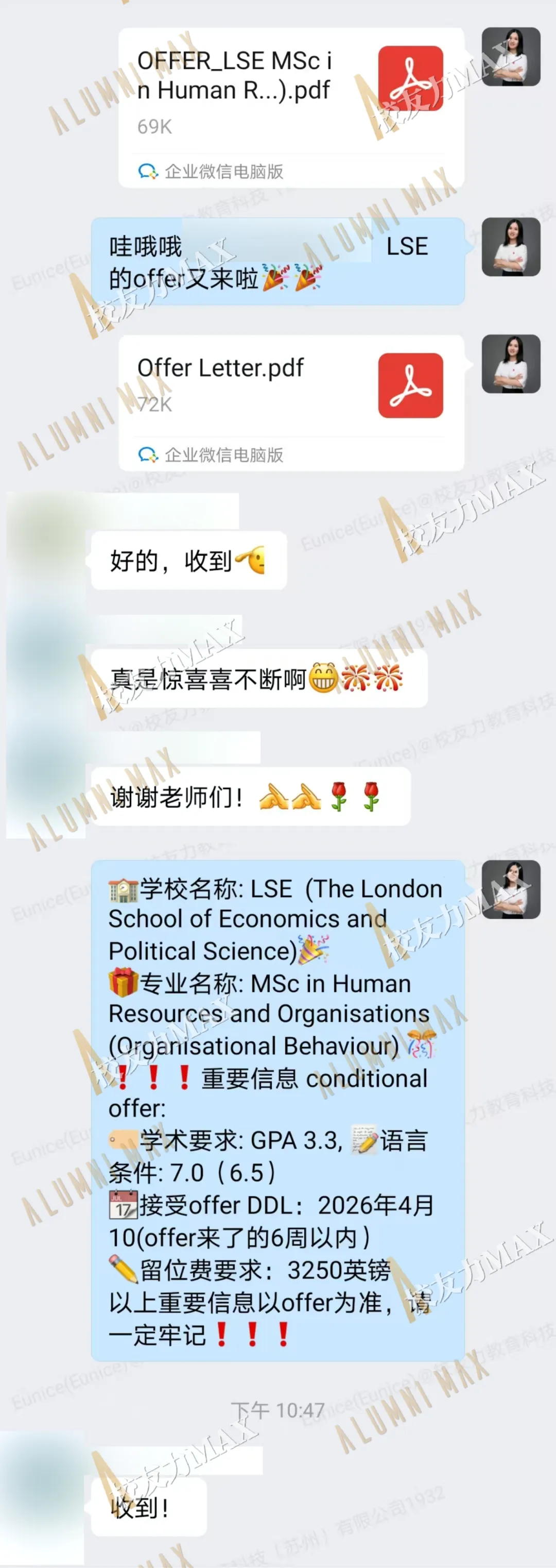 惊喜又来!女神校LSE又发人力资源offer录取!