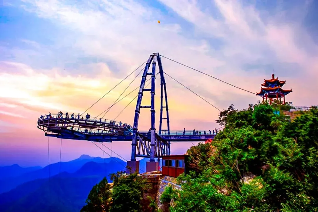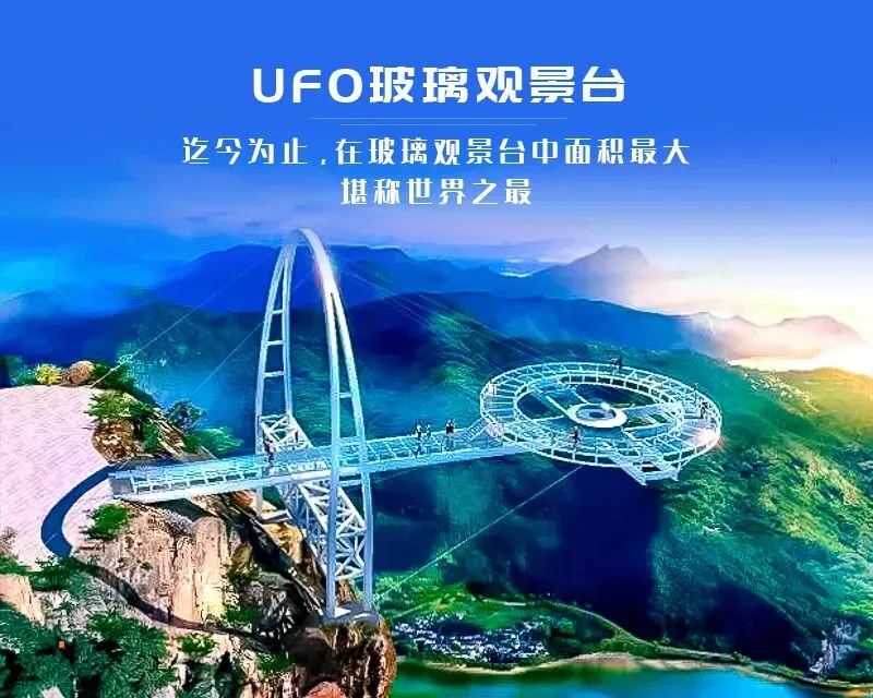 “UFO”观景台最大悬挑长度32.8米。较美国科罗拉多大峡谷悬空玻璃桥还要长11.4米;比被称为“世界第一悬挑玻璃桥廊”的云阳龙缸景区悬挑还长6.12米。