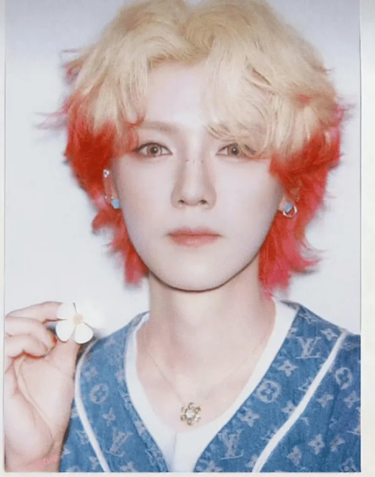 落日熔金的发色,LV老花的深蓝,指尖拈一朵白色蝴蝶兰——他站在纯白的画布前,像一首潮酷与诗意并存的现代诗。
