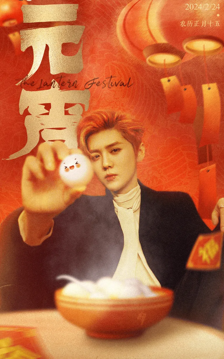 两年前的元宵夜,他站在中国红的背景前,黑色西装与白衬衫的利落剪裁,是现代的冷静与克制。手中那颗发光的卡通球,却泄露了节日的俏皮与温度。