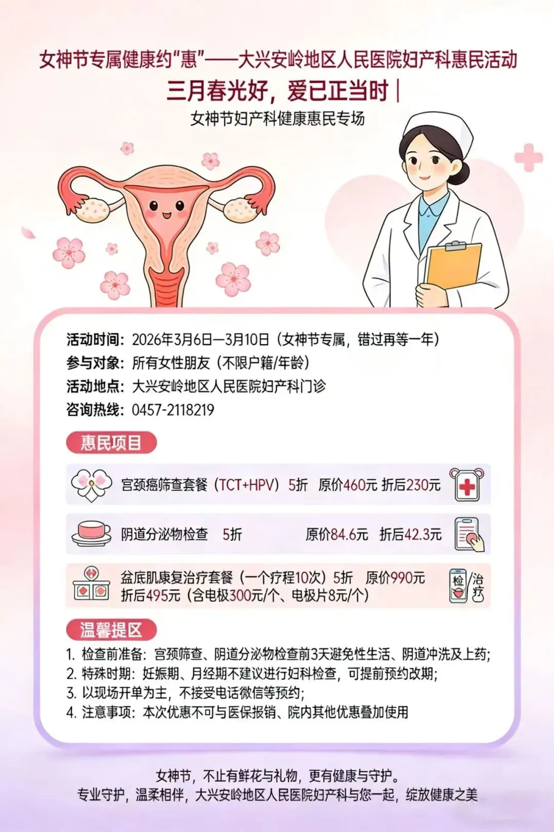 当前位置:首页>美女资讯>女神节专属健康约“惠”——大兴安岭地区人民医院妇产科惠民活动