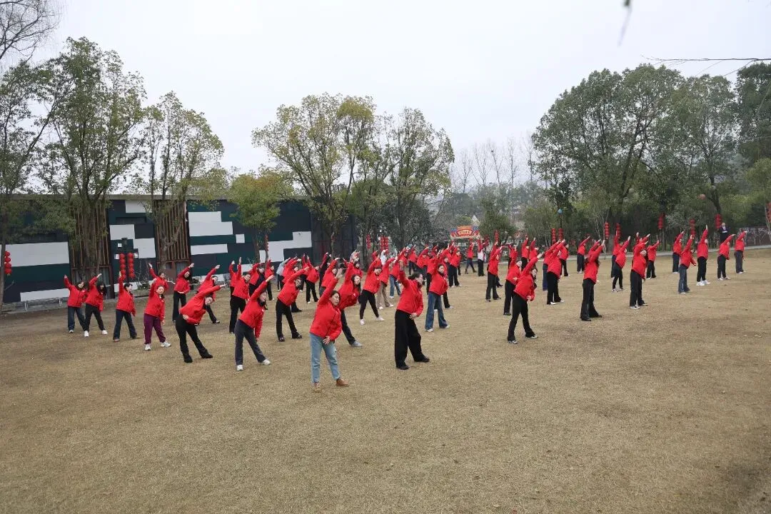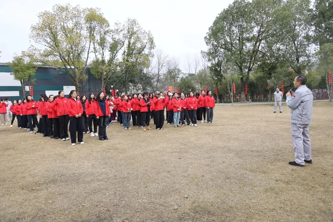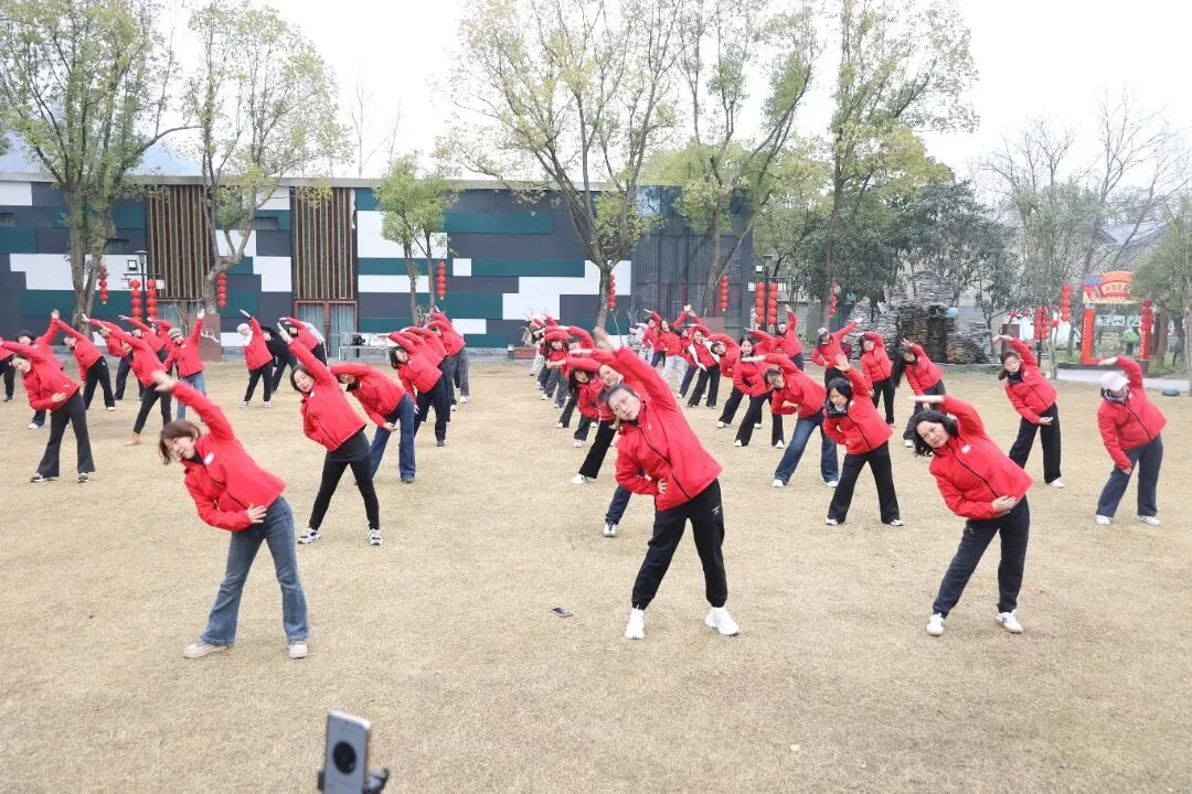 3月3日,春光正好,空气中都弥漫着欢快的气息。一群身着鲜艳大红冲锋衣的女员工们格外引人注目,她们正在教练充满激情的带领下,热火朝天地跳着健身操。