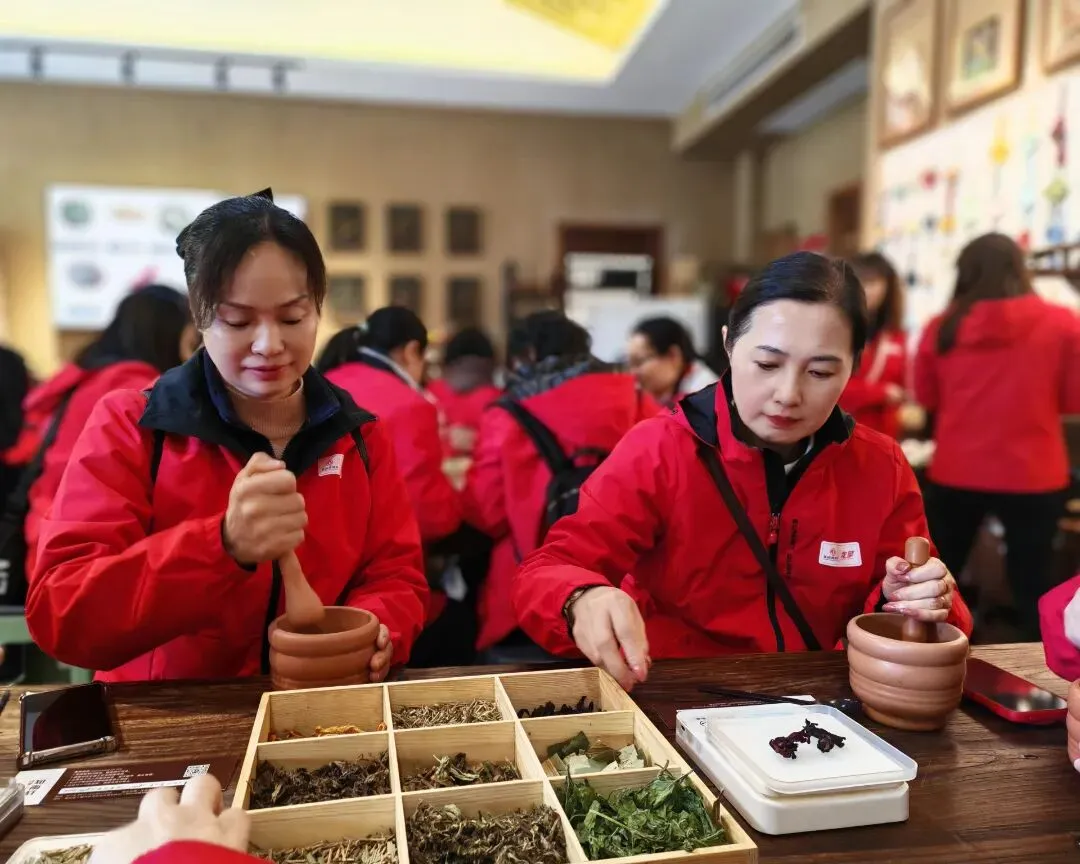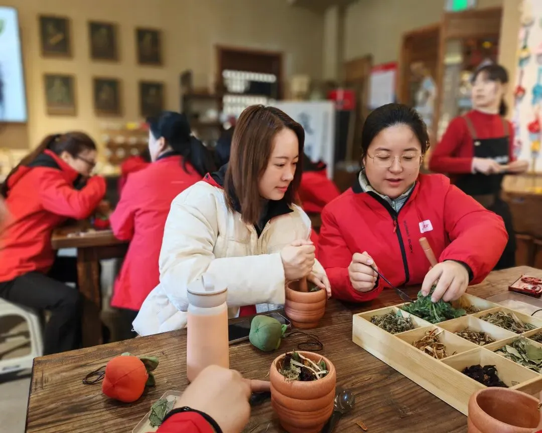 9种香料摆在大家面前,艾草能驱蚊、薰衣草可助眠、薄荷可提神……每一种香料都承载着美好的期许,大家根据需要各自选择后,将香料捣碎、研磨,再装袋,一个个独具特色的香包便诞生了。大家拿着自己亲手制作的香包,脸上洋溢着自豪而满足的笑容,纷纷拍照留念,记录下这难忘的时刻。