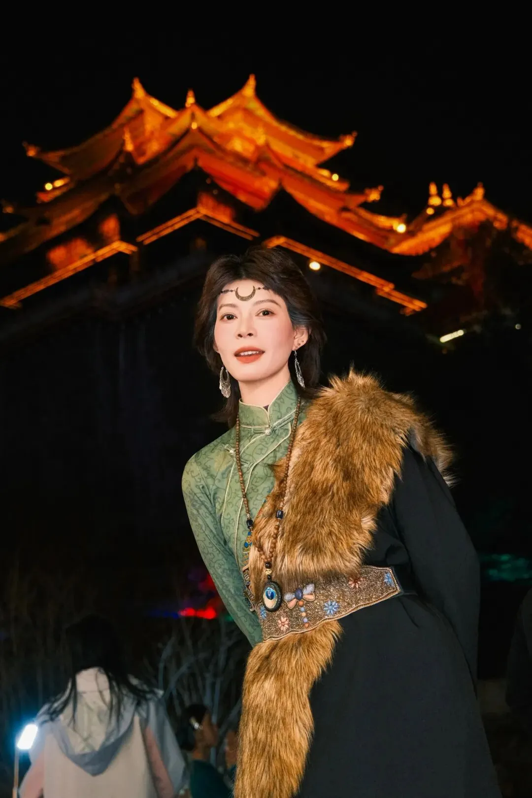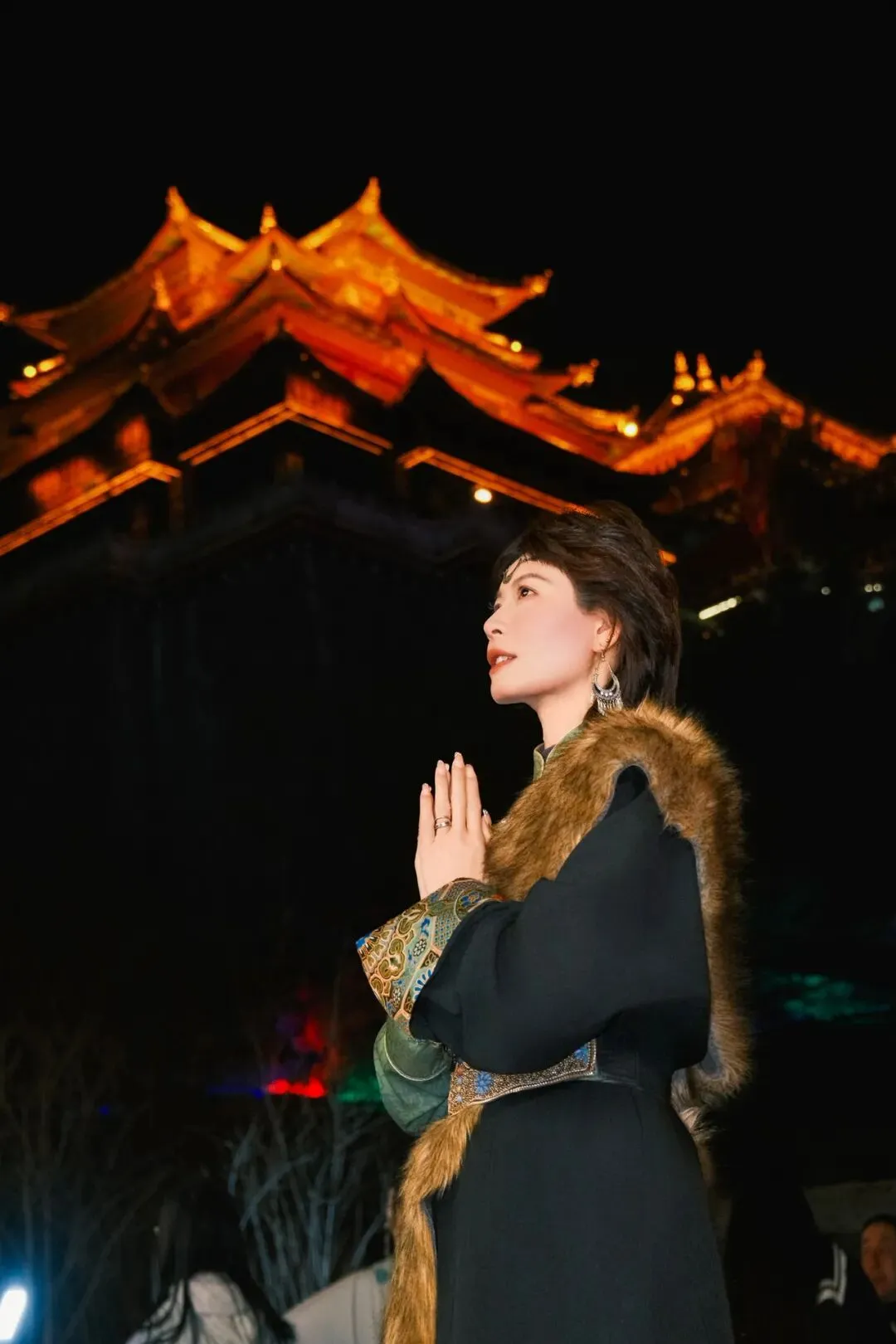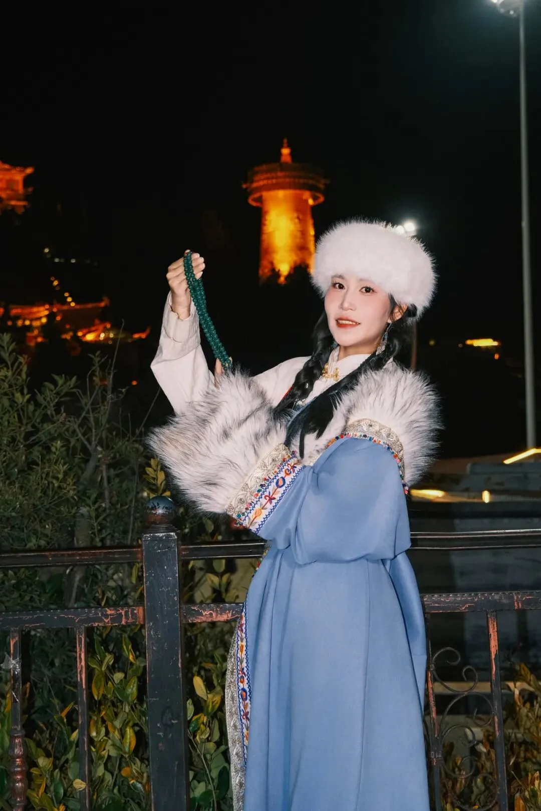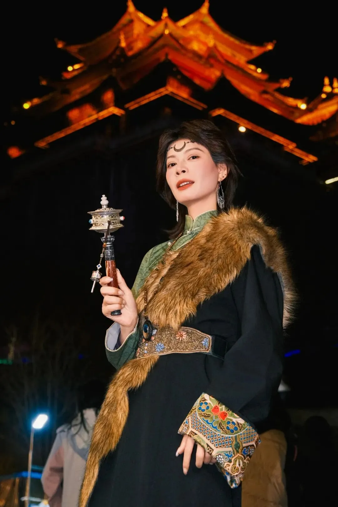 我们站在白塔前,身后是灯火摇曳的藏式建筑,月牙钩悬于天际,转经筒轻响,这一刻,传统与现代交融,信仰与美学共生。