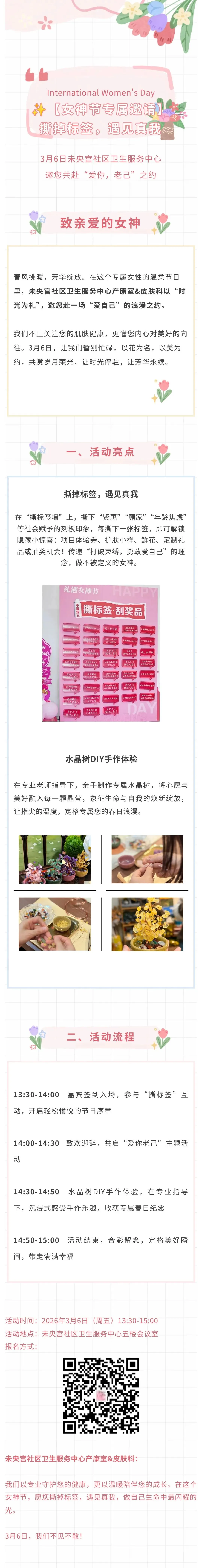 当前位置:首页>美女资讯>【女神节专属邀请】撕掉标签,遇见真我——3月6日未央宫社区卫生服务中心邀您共赴“爱你,老己”之约