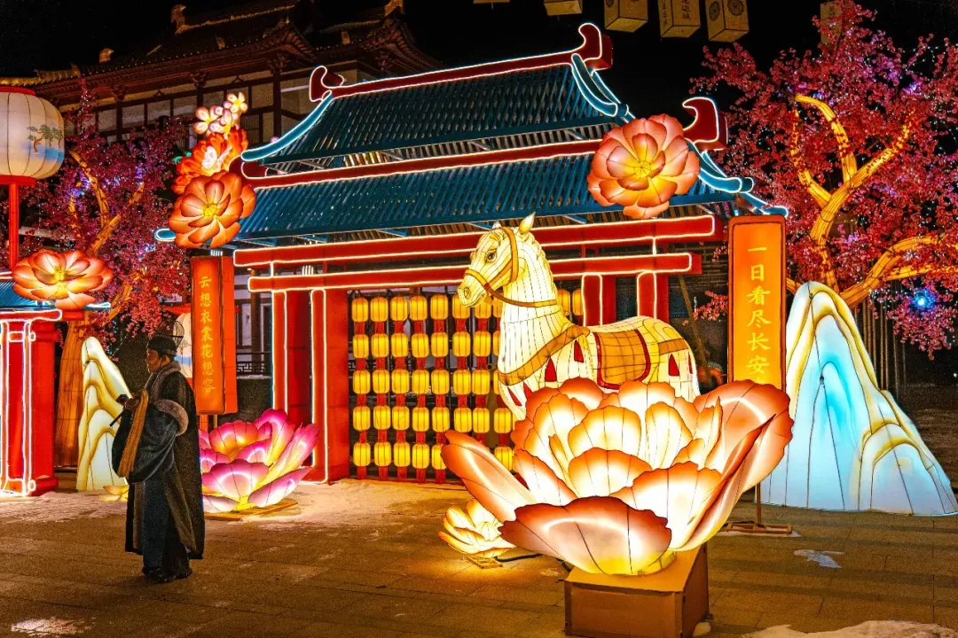 飞檐翘角搭配百米灯廊
