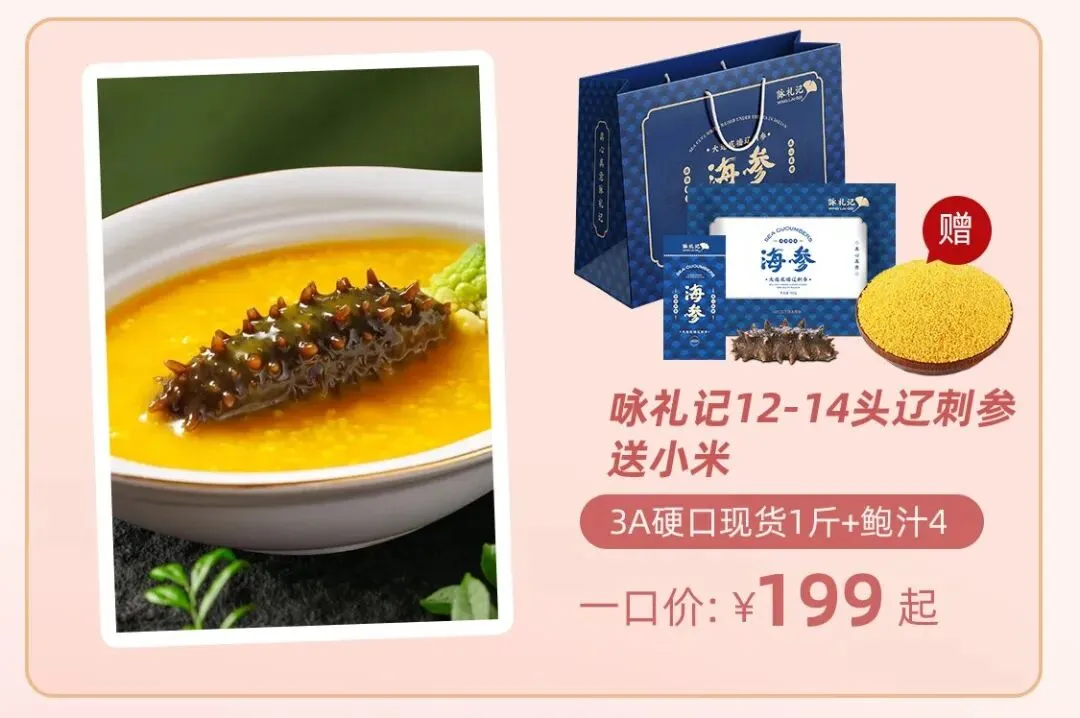 女神节,把温柔滋补留给自己。咏礼记辽刺参,产自大连北纬39度深海,自然底播生长,足年长成,参体粗壮、肉质厚实、参筋饱满,营养充足。