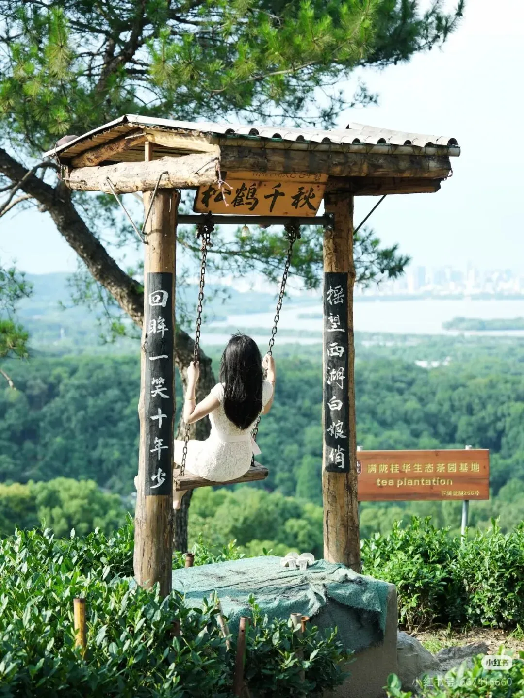 2. 网红秋千:茶园为底,一面西湖(苏堤、三潭印月),一面钱塘江,3月晴天出片率极高