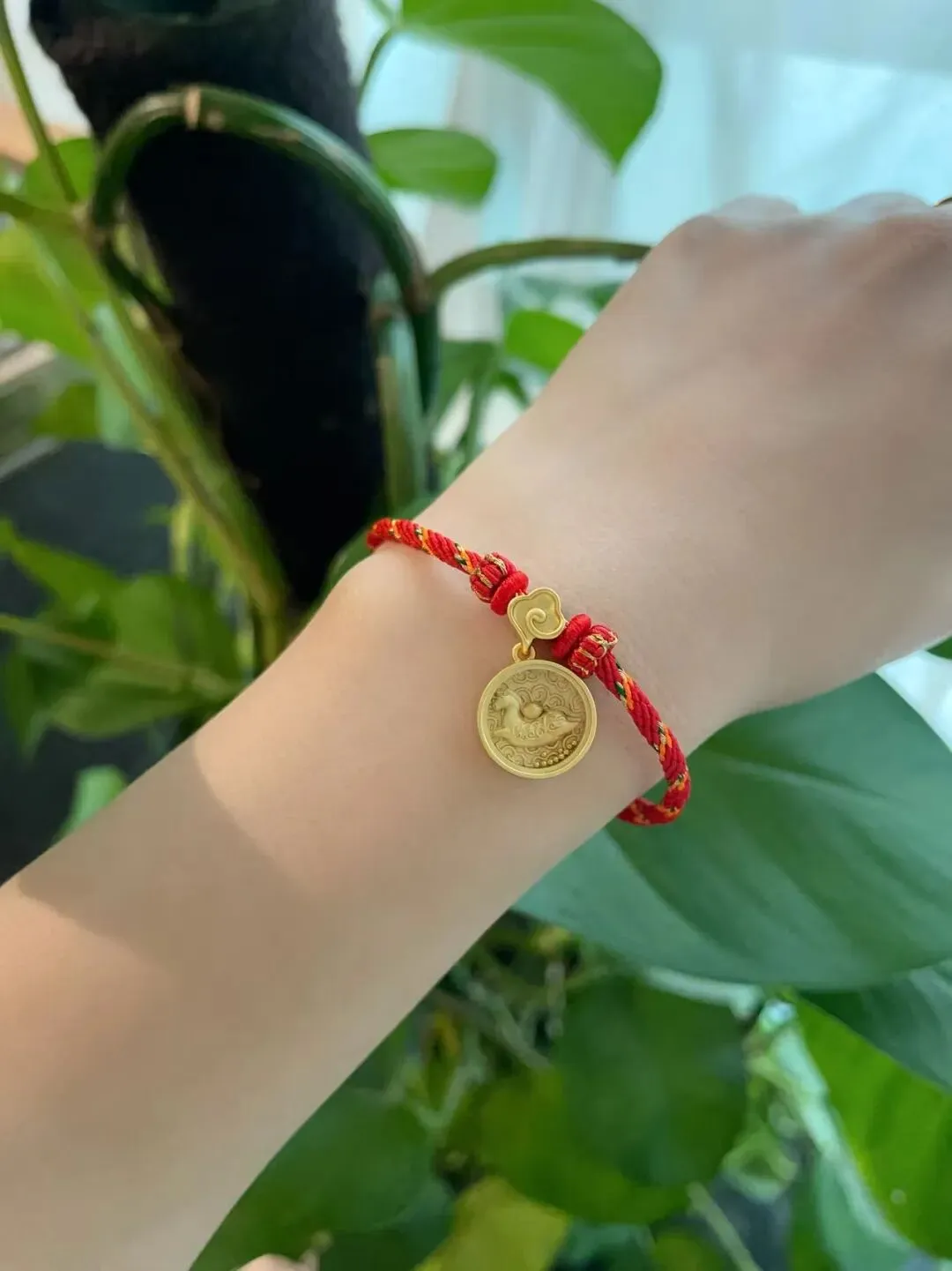 中国红与金黄编织的手绳显白百搭,适配日常通勤与新年聚会。