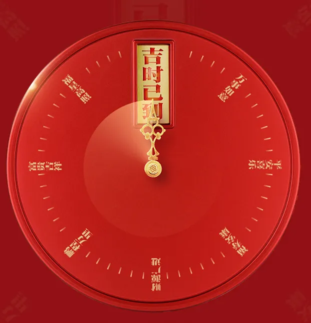 轻转盒盖,“吉时已到”“平安喜乐”“鹏程万里”等8个吉祥祝福依次呈现;