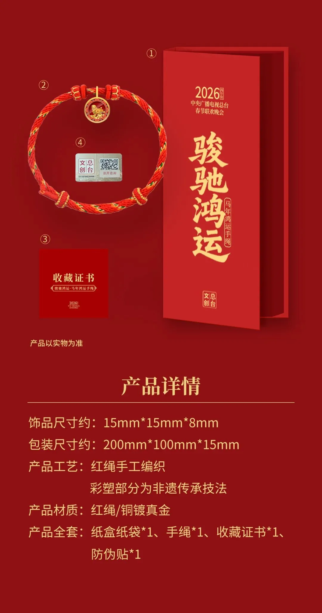 新年送礼重在心意,总台文创2026年春晚生肖手串与骏驰鸿运马年手绳,兼具颜值、故事温度,每处细节都藏着新春祝福。