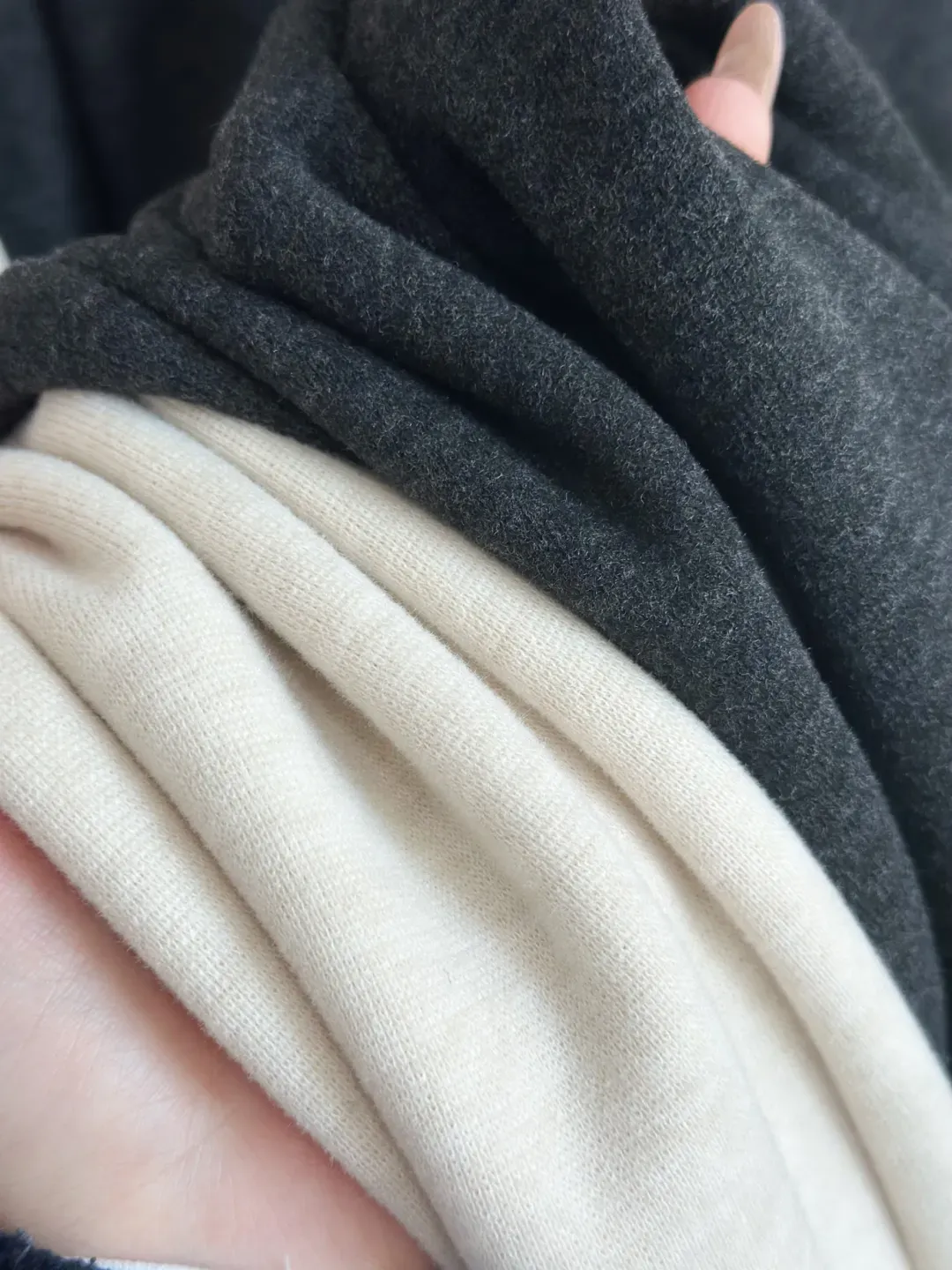 不是普通卫衣那种软塌塌的毛圈布。它是一种高克重、高密度的精梳混纺面料,里面悄悄加入了少量氨纶。