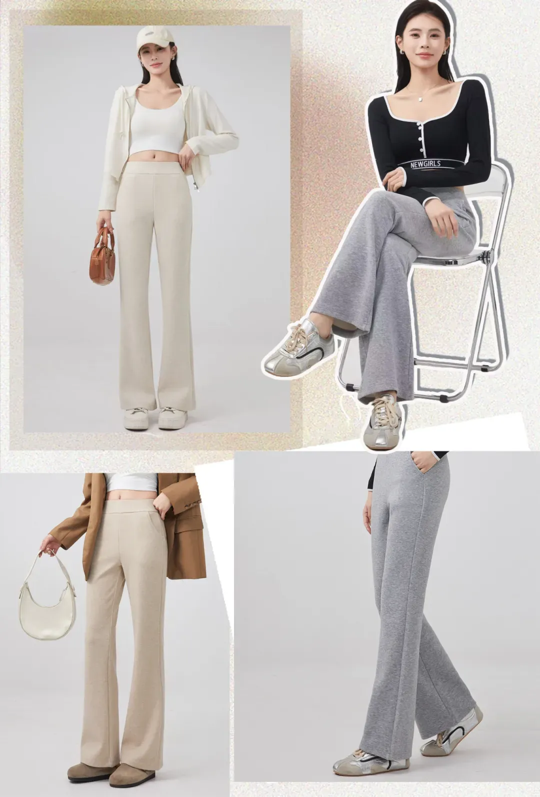 直接告别传统喇叭裤的僵硬感,舒适度向居家裤看齐。