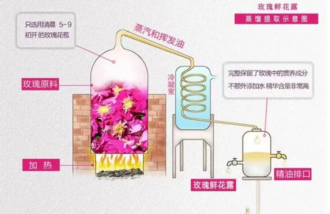 敲重点:一瓶玫瑰纯露,需要萃取1万朵大马士革玫瑰。