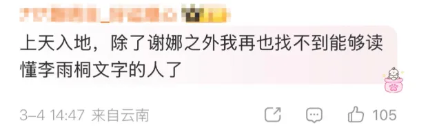网友:上天入地,除了谢娜之外我再也找不到能够读懂李雨桐文字的人了。