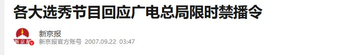 选秀的禁令,是在2007年9月份出的。