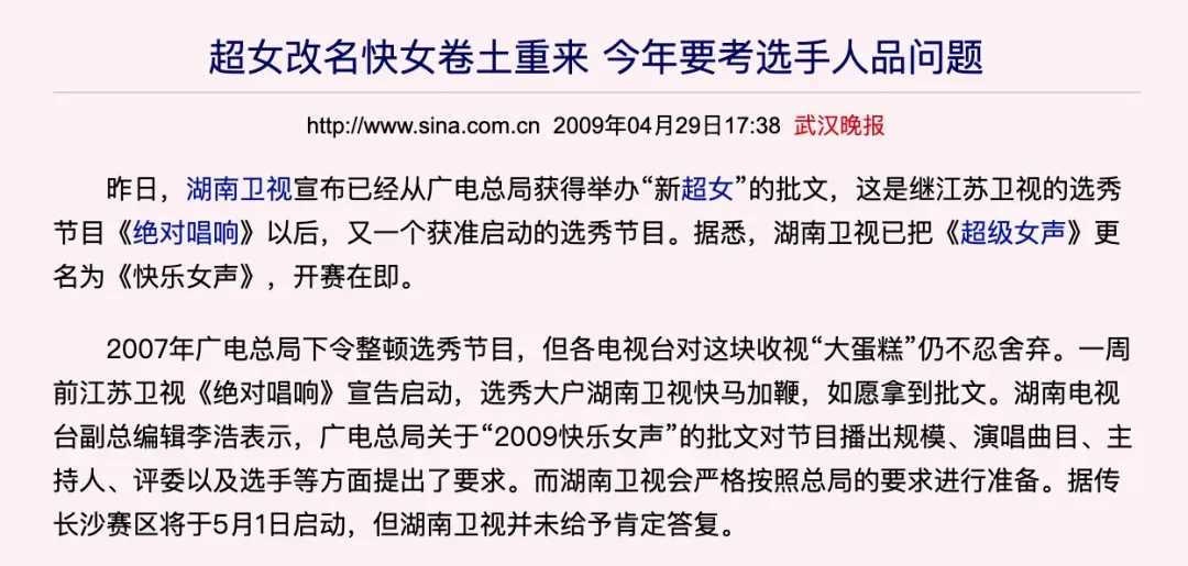 2009年,湖南卫视再次搞到了“新超女”的批文,把《超级女声》改为《快乐女声》。运气好,一个“狮子座”绵羊音又引爆话题。