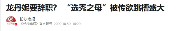这一年关于龙丹妮要离职的消息满天飞,有说她接管天娱的,有说她要跳槽盛大的,最后是湖南广电和盛大联合出资办“华影盛视”,让龙丹妮当总裁。