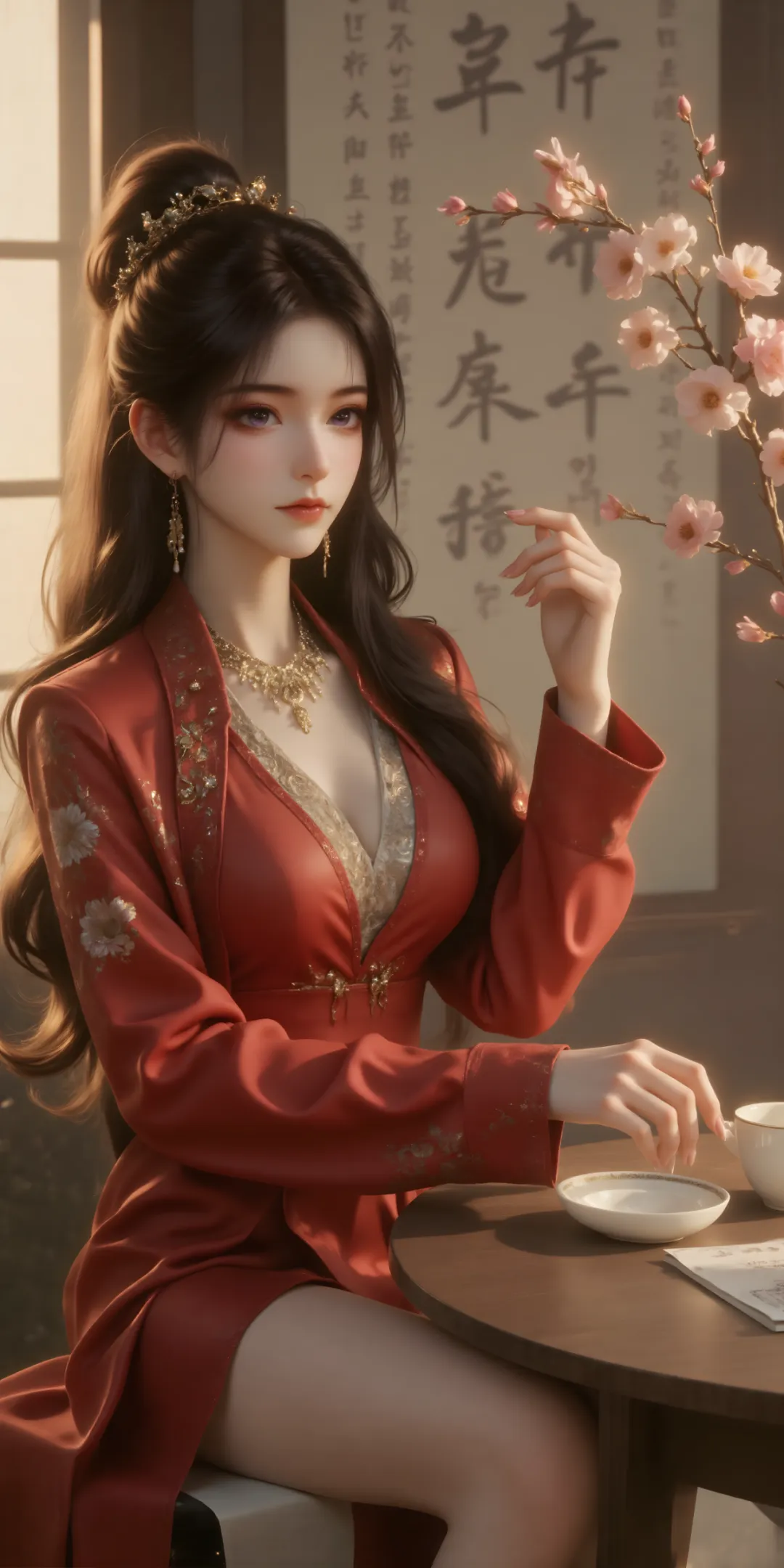 墨发依旧乌黑亮泽,长度已及腰际,不再是半披半束的娇俏模样,而是高高挽起,用一枚雕刻着落云宗徽记的碧玉簪固定,显得干练利落,便于打理药园与施展功法[6]。发间不再佩戴多余的珠饰,只保留玉簪,简洁而大气,暗合她“一心向道、不慕浮华”的心境[6]。此时的她,美得冷艳而独立,清绝而干练,既有筑基修士的锋芒,又有药园管理者的沉稳,让人望而生畏,却又忍不住被她的气质所吸引。