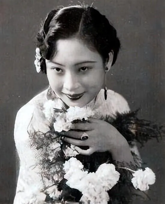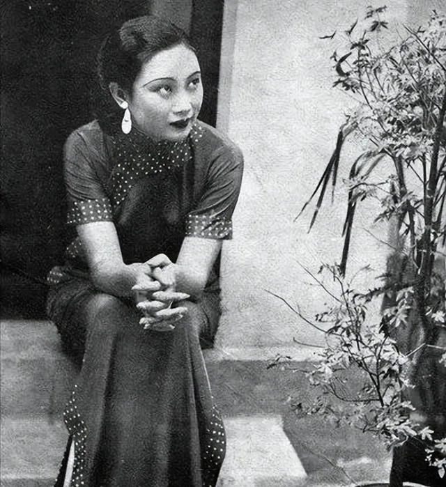 图中这位就是胡蝶,这张私房照的味儿在眼神上,眉峰压得很平,嘴角却微微挑着,耳畔一对乌黑耳钉像两点墨,靠着手背,脸颊边那颗小酒窝一露,灯下的人间就安静了,那时候没有磨皮没有滤镜,底片吃光吃得实在,皮子细腻到能看出粉底的颗粒感。