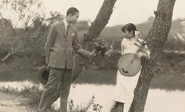树干斜着,琵琶抱在臂弯,西装男士把花递过来,两种礼数在一张照片里碰了杯,以前追人讲分寸,现在表白讲速度,味道不一样了。