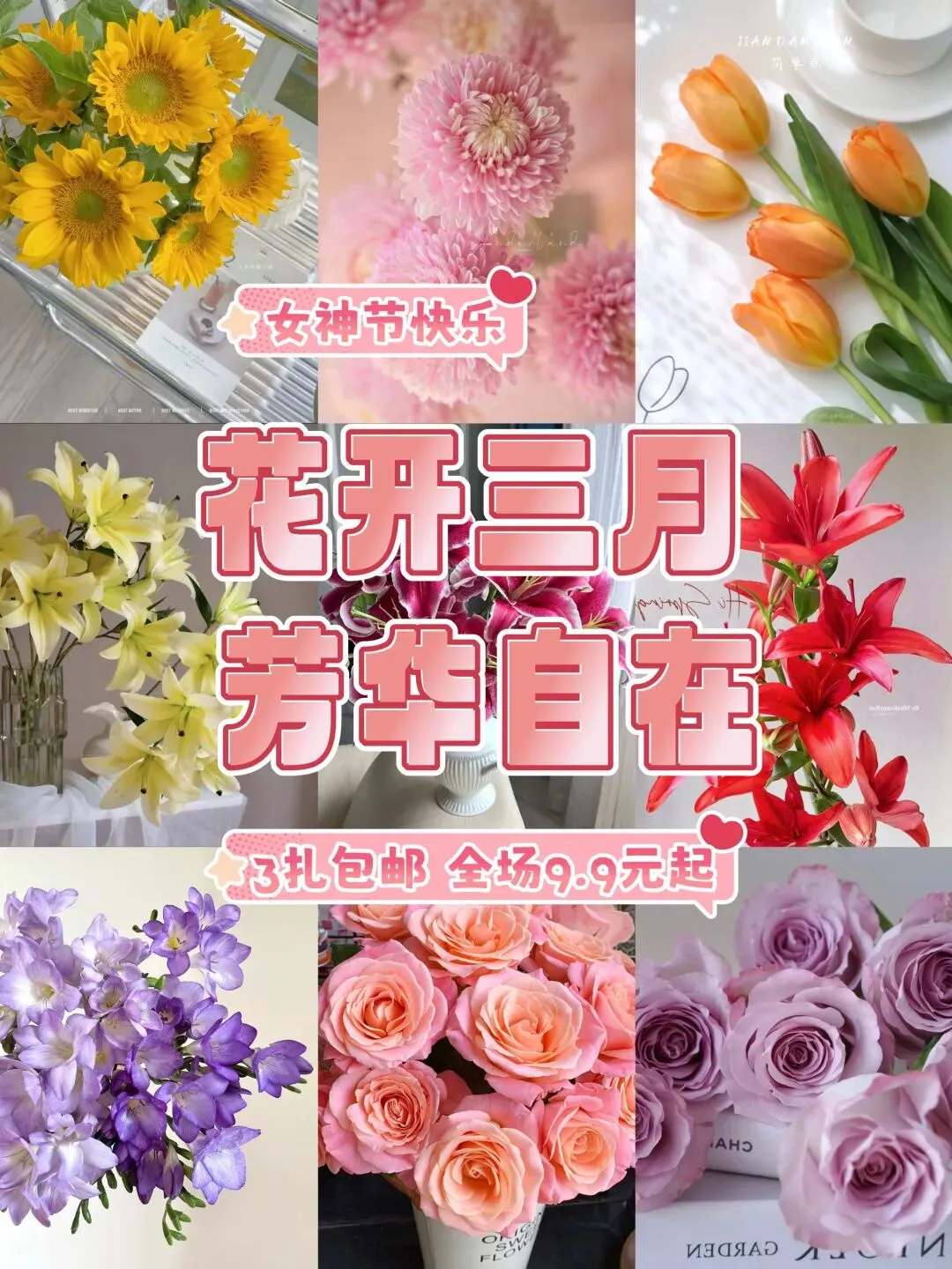 单件低至9.9元起,3件就包邮一次解锁多款花材,冷链到家下单即赠保鲜剂!收到花一定要根据教程醒花。