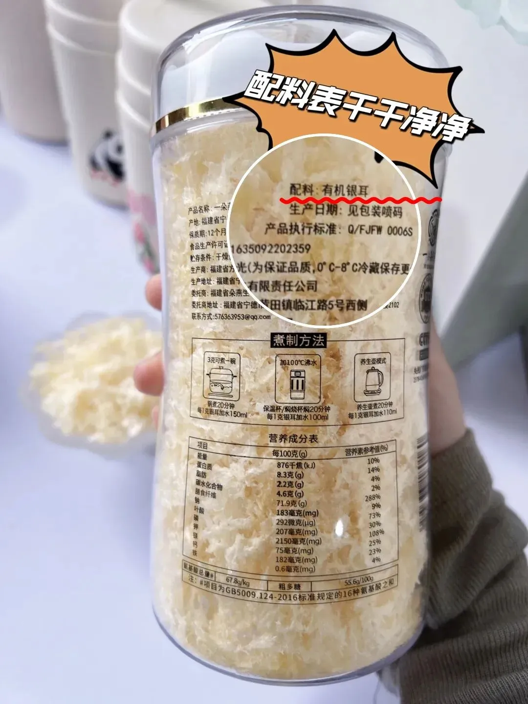 早上一杯暖呼呼的银耳,不仅滋养肠胃,还能美容养颜。这款银耳配料表很干净,仅有银耳药食同源,100%古田有机草本银耳就是品质最好的保证!