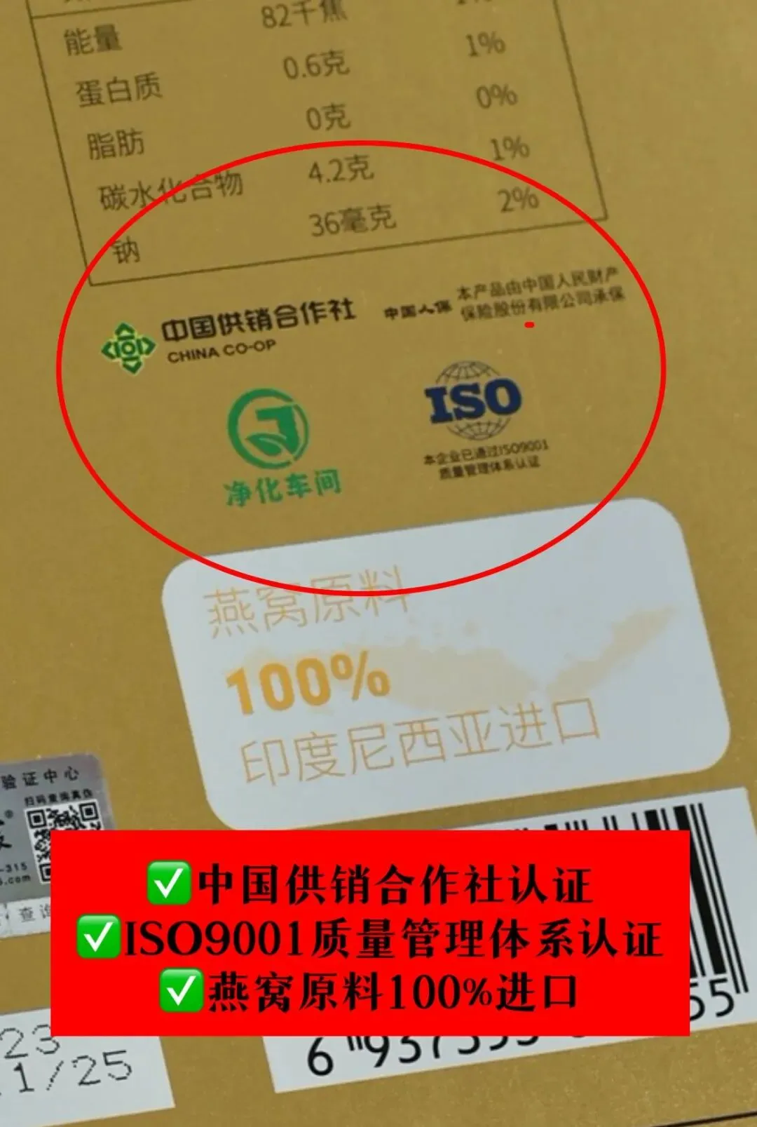 每瓶≥1000mg固形物真材实料,直采印尼金丝燕白燕窝,线下四位数甚至五位数的品质。并且配料表很干净,只有纯净水、燕窝、蛹虫草和益生元低聚果糖。