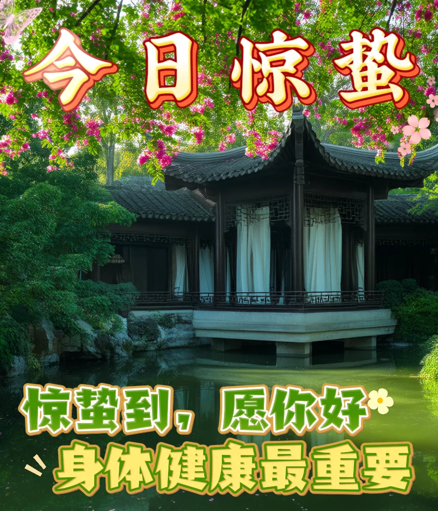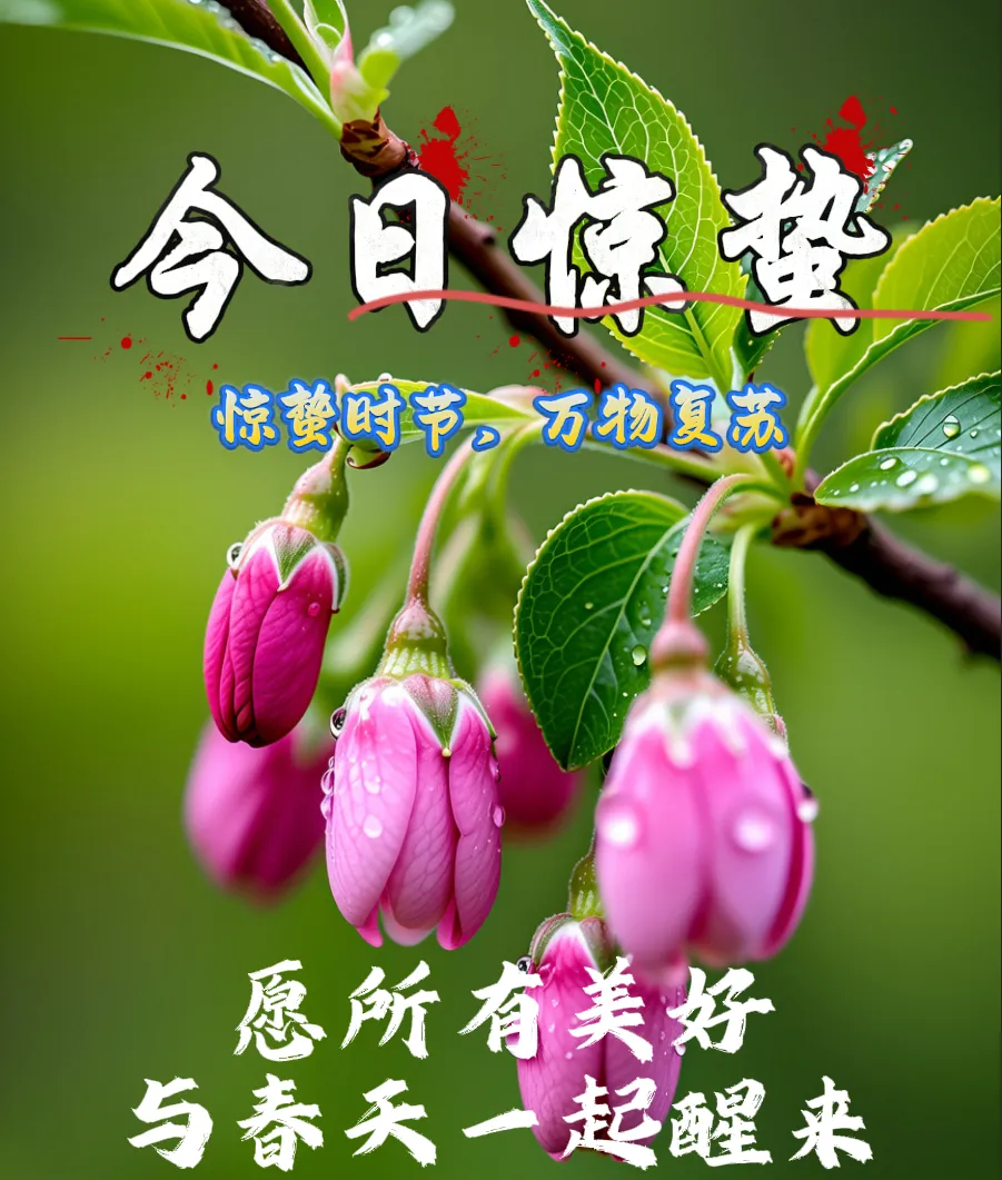 冬去春来,惊蛰已到;祝福连连,不会减少;一声春雷,迎来幸福通道;一阵春雨,送走万千烦恼;一缕春风,把心情整理打扫;一片春阳,把幸福温暖照耀。祝大家惊蛰如意,快乐安康🙏!🌟🎉😄💪