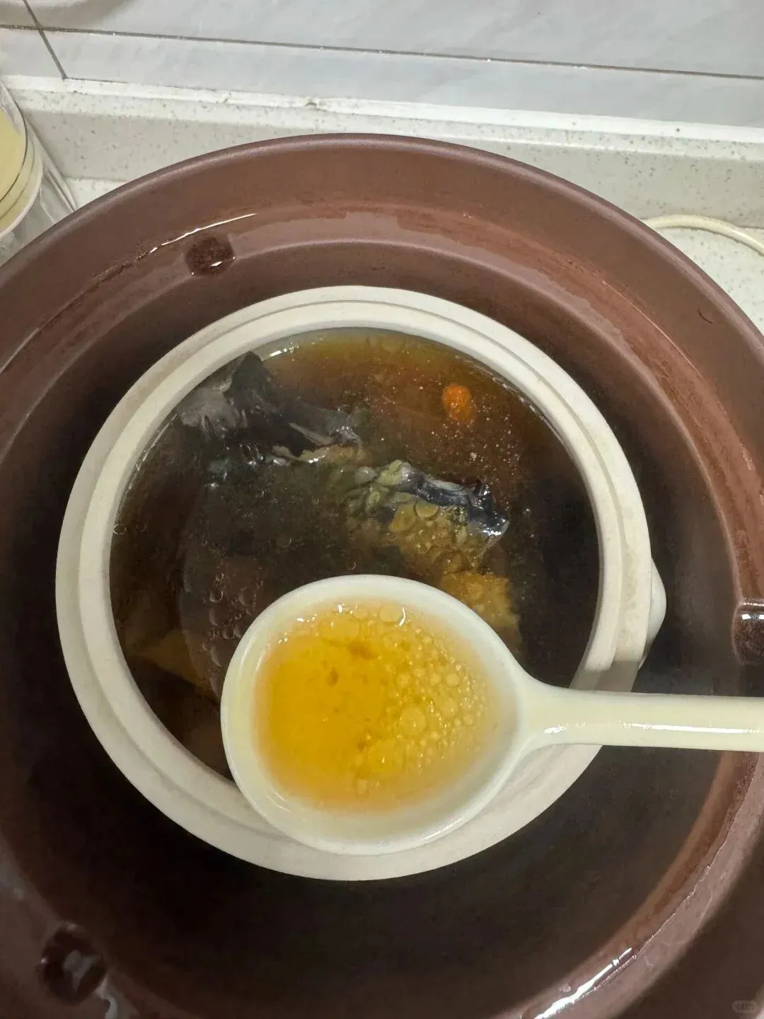4. 最后调味:出锅前 10 分钟放入枸杞(枸杞久煮会烂且流失营养),喝前加入少许盐调味即可。不需要加味精鸡精,原汁原味最鲜美!