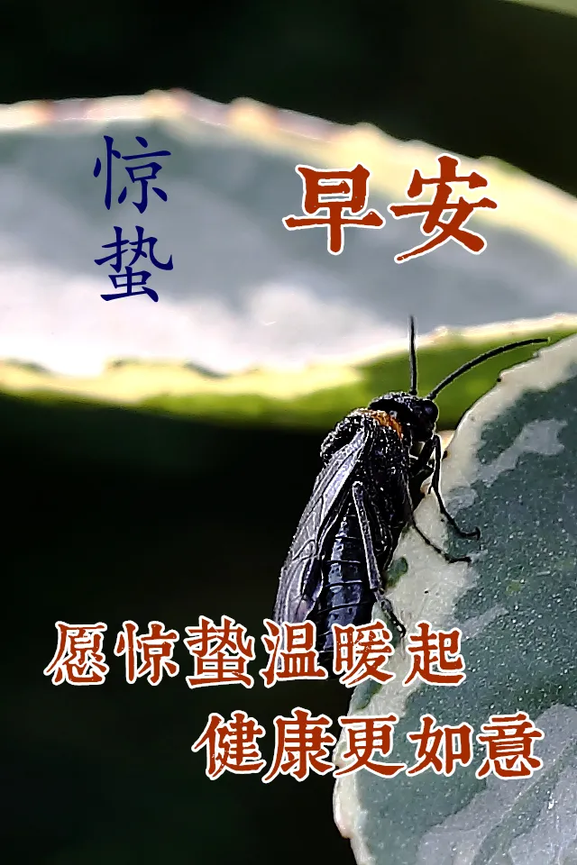 惊蛰时分,祝福纷纷,我的短信,色彩缤纷,红色好运祝你顺心,紫色浪漫给你温馨,蓝色广阔和你知心,黑色幽默逗你开心,朋友,祝你惊蛰快乐。