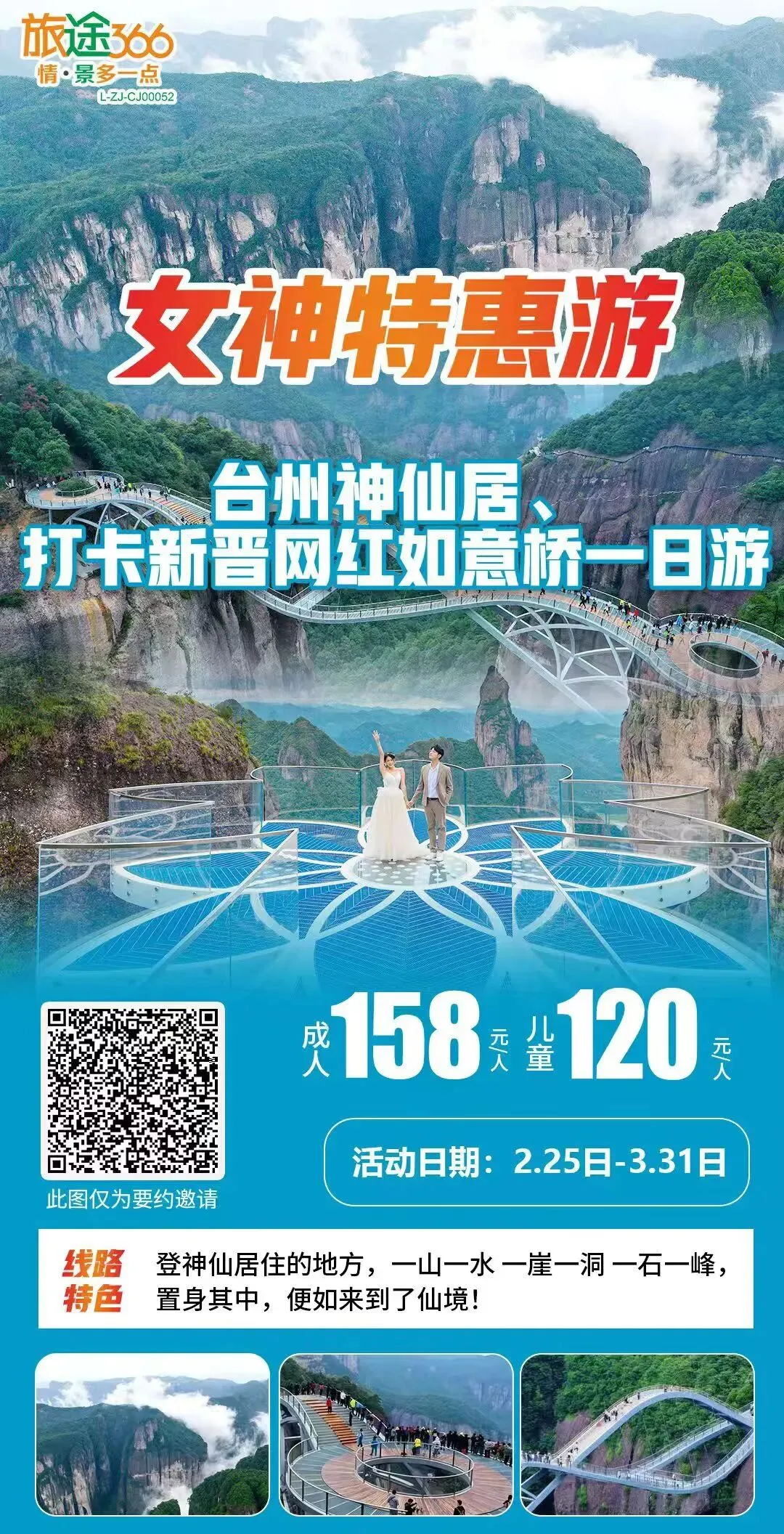 当前位置:首页>美女资讯>3.7号8号已成团,有余位【女神特惠游】台州神仙居、打卡新晋网红如意桥一日游国内汽车团 常规 成团