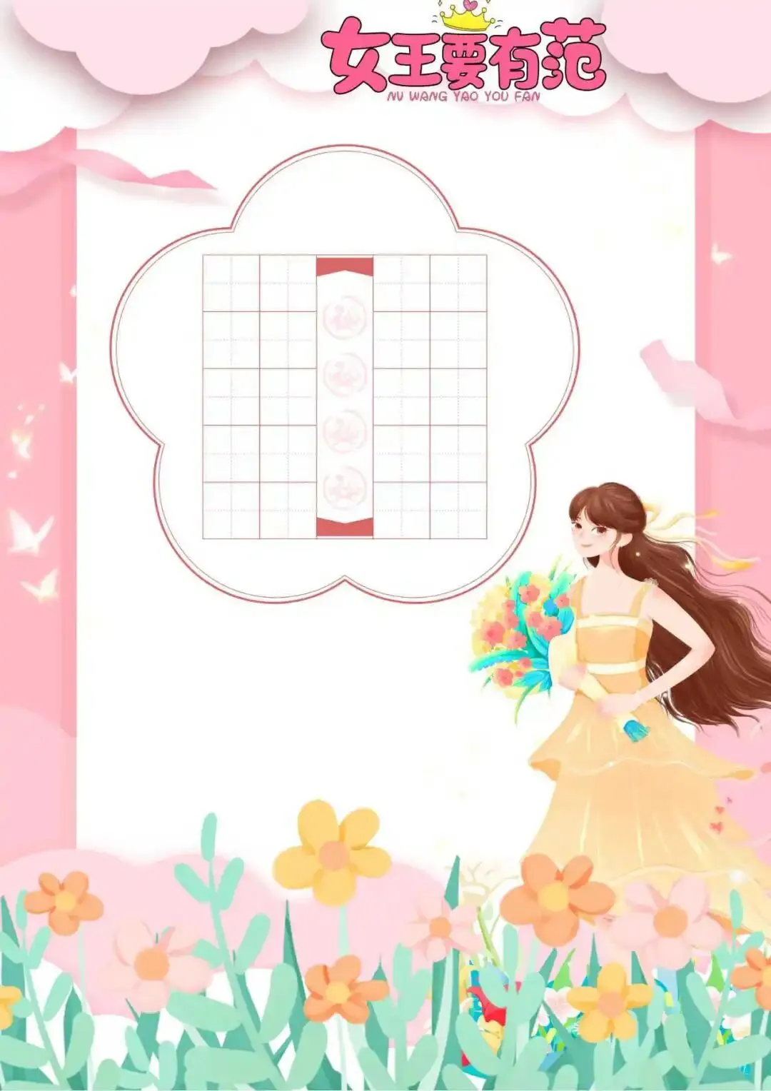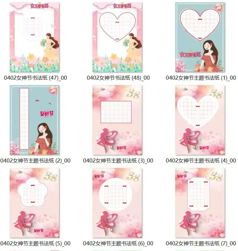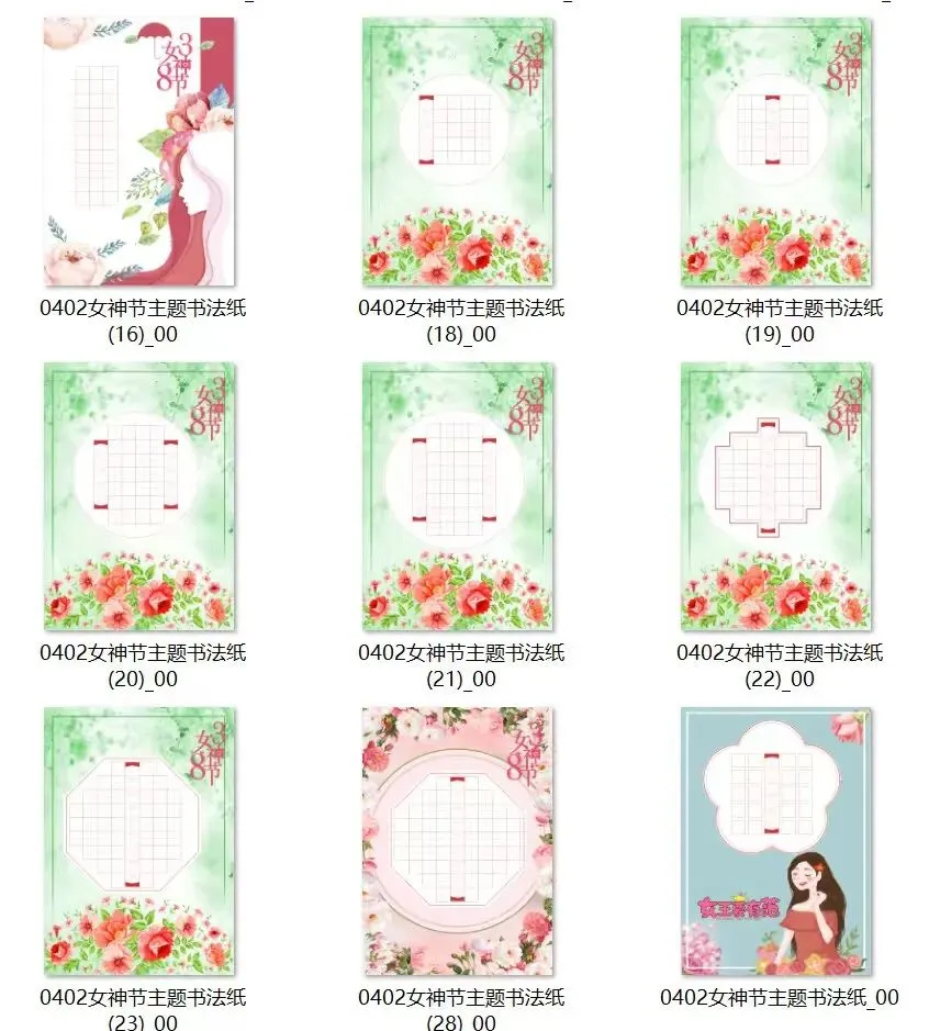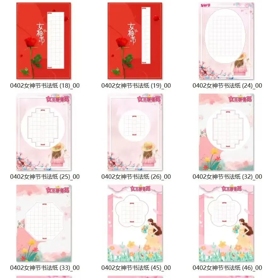 当前位置:首页>美女资讯>3.8女神节主题书法纸,高清无水印电子模板,共49张