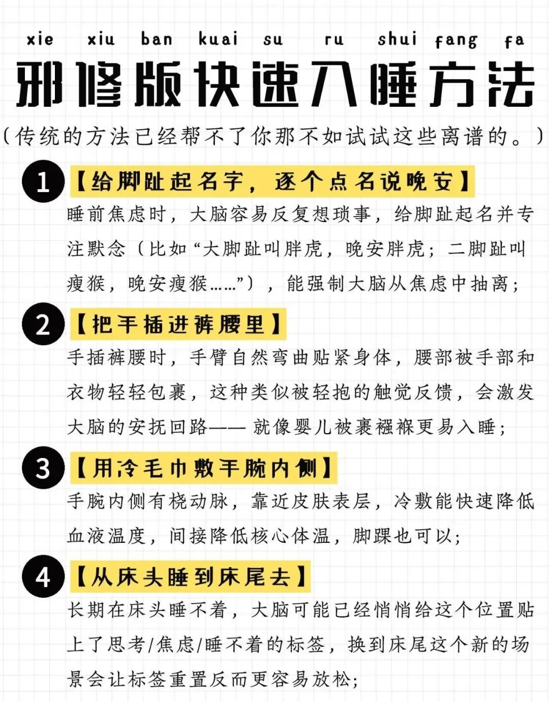 当前位置:首页>美女资讯>女神养成手册丨邪修版快速入睡的方法