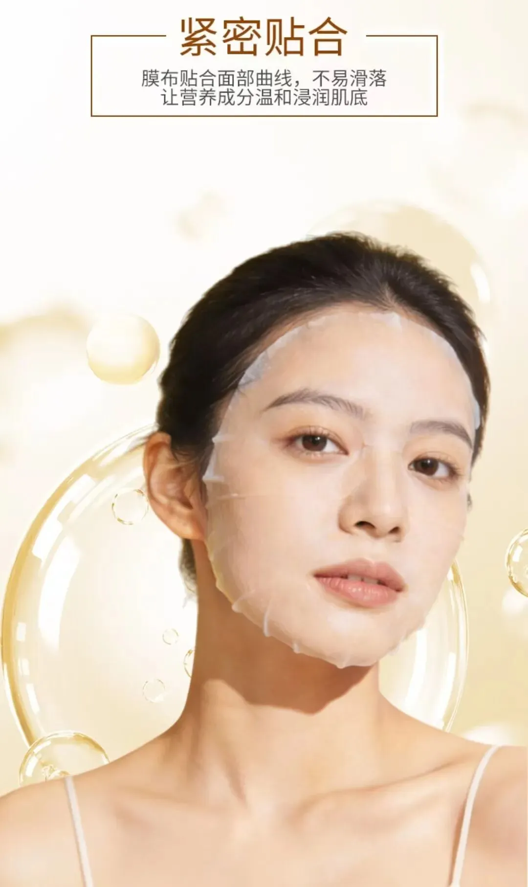 膜布剪裁贴合脸部曲线,紧密贴肤不滑落,让营养成分温和沁润肌底,护肤不耽误日常琐事,随时随地焕亮肌肤。