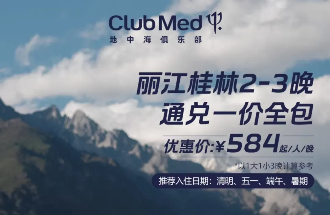 ※ Club Med丽江/桂林度假村2-3晚一价全包通兑套餐