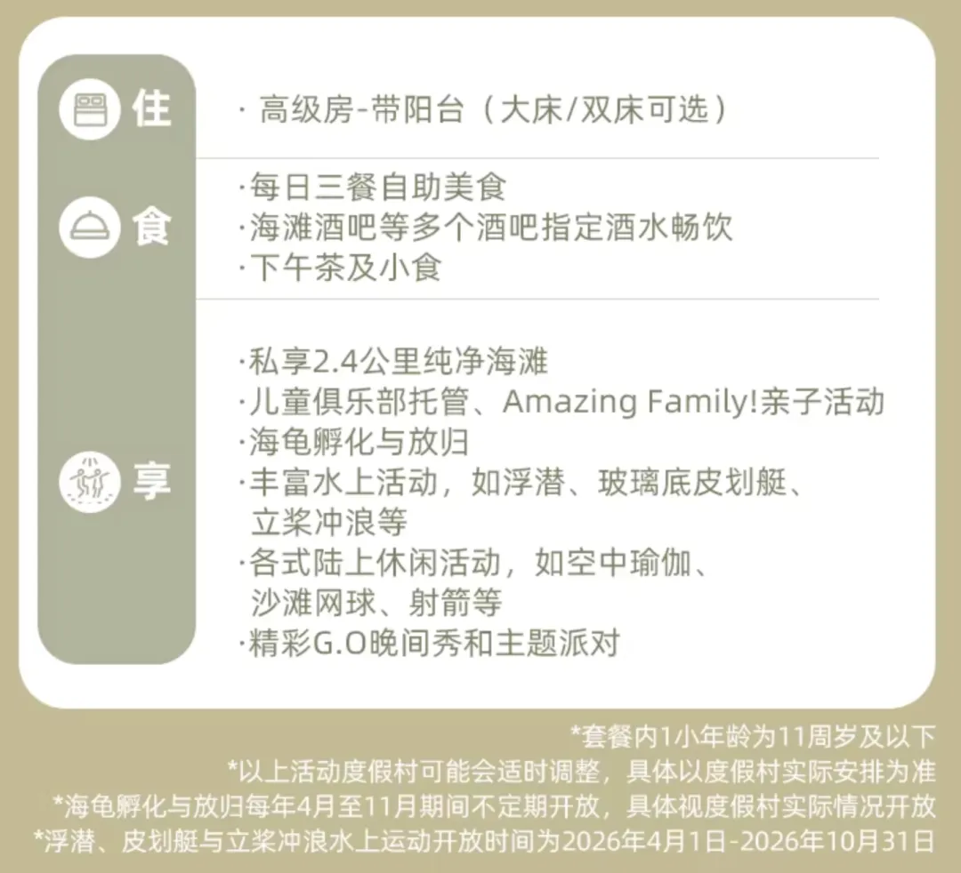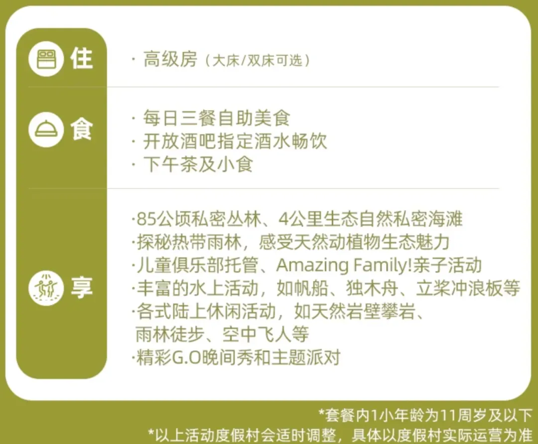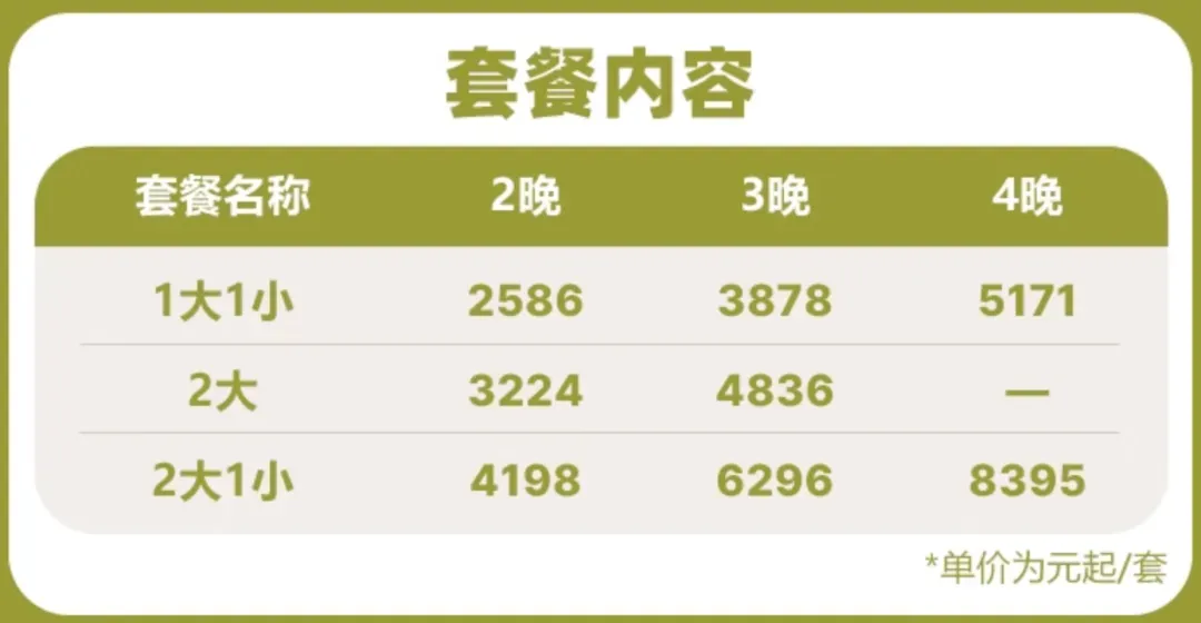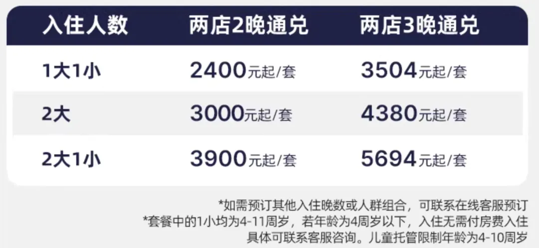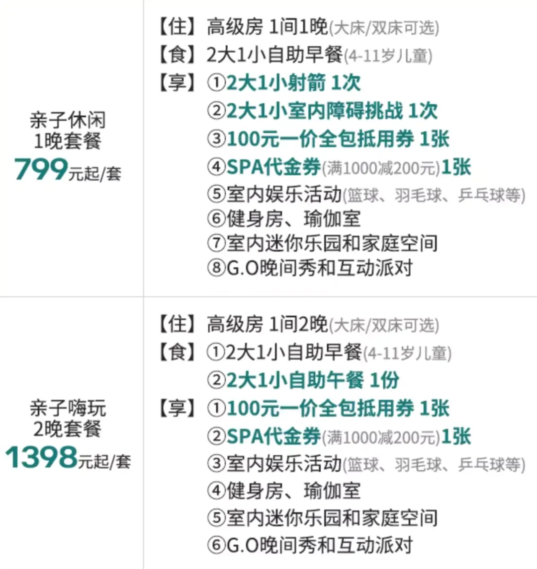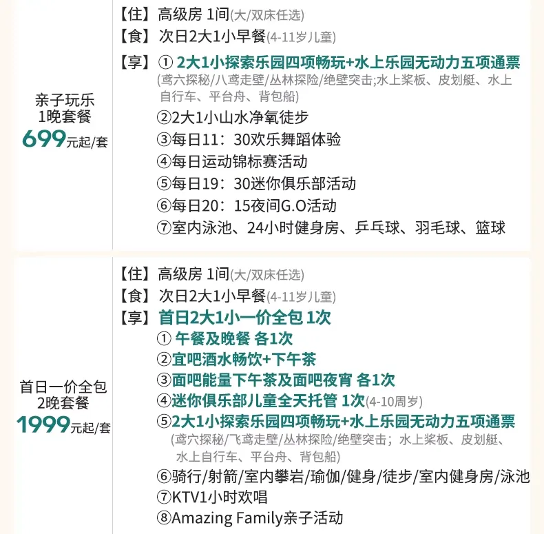 • 通兑2晚特惠:一晚含一价全包,享三餐+儿童托管