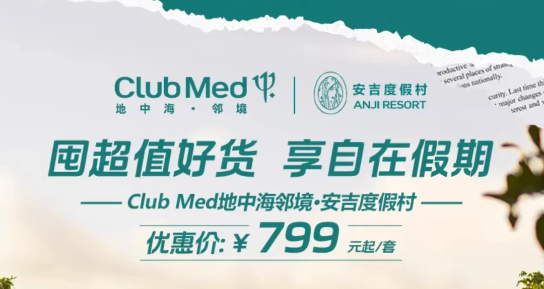 ※ Club Med地中海·邻境,1元抵300元。满1289-50元、满2289-100元和3389-150元