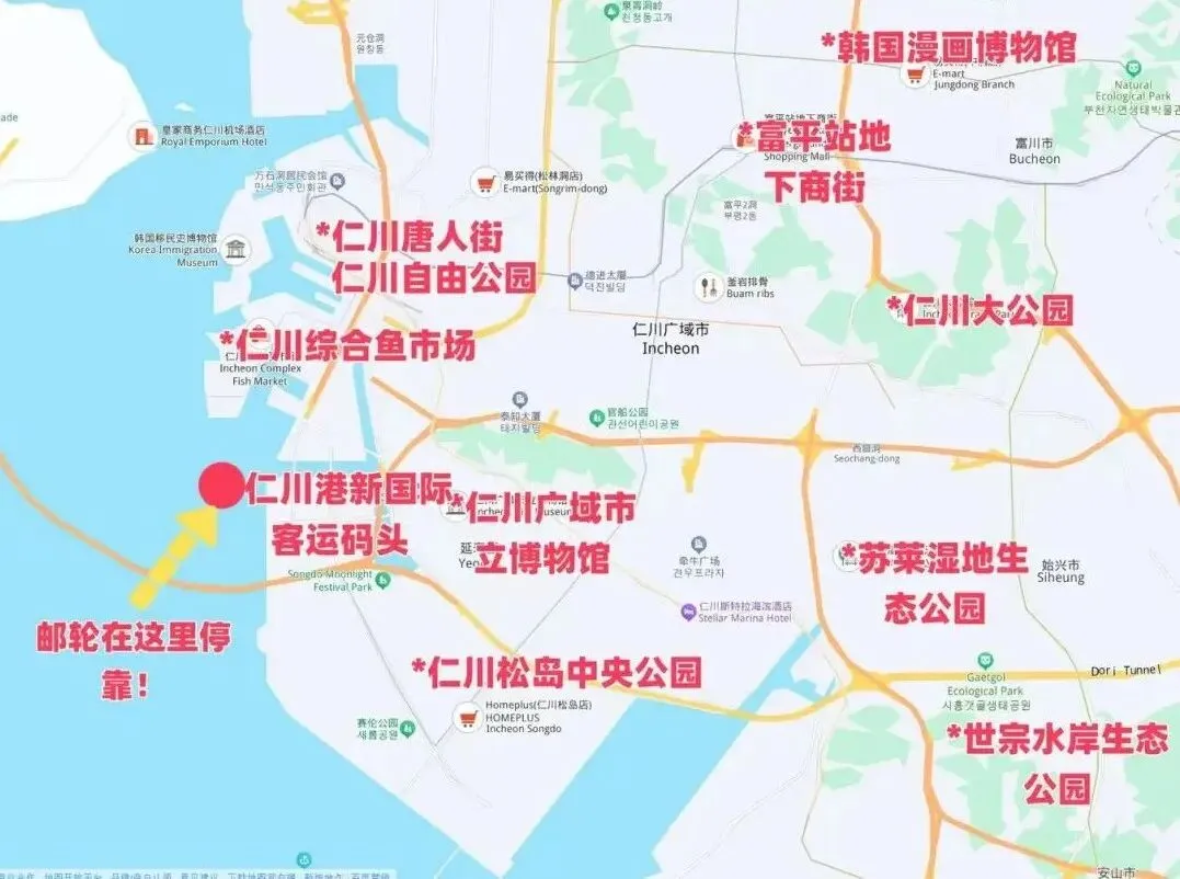 3. 仁川码头打车去仁川市区只要30分钟。
