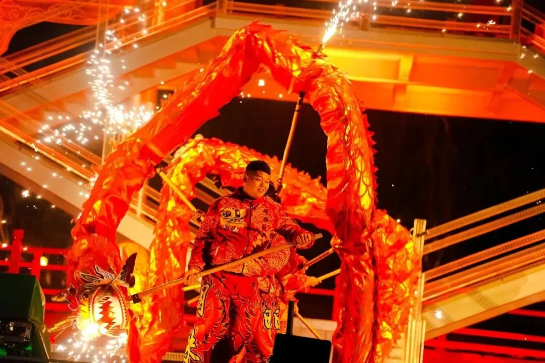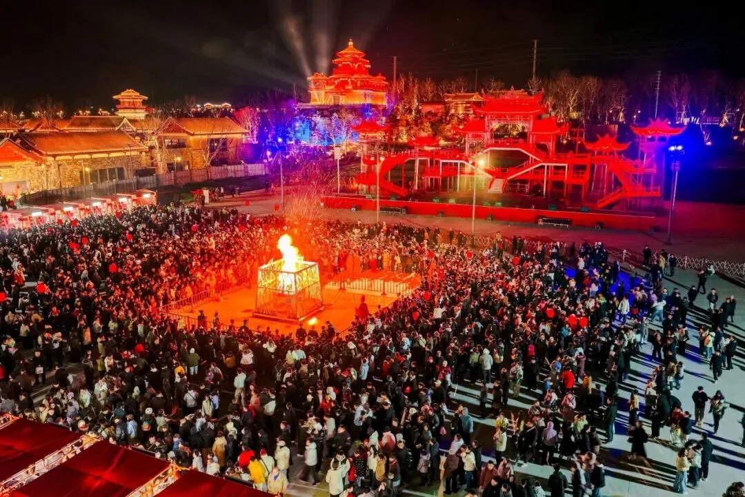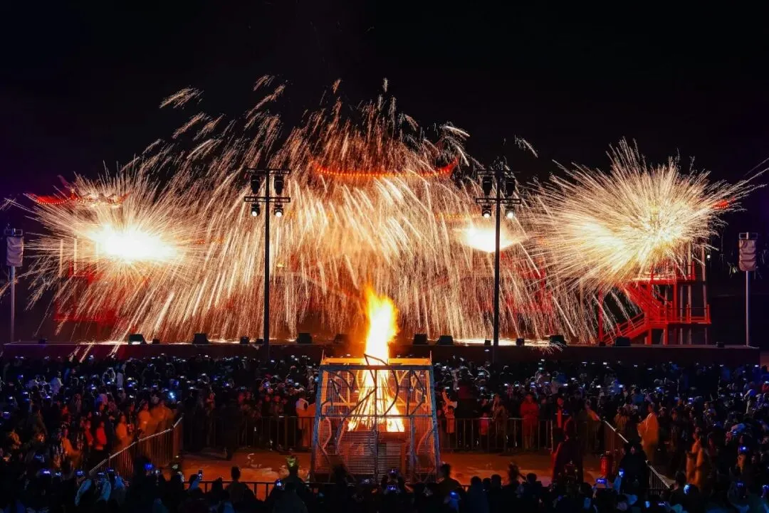社火大秀炸裂开场!傩舞、高跷、舞龙直接把年味拉满~银丝古建变身浮光琉璃台,压轴打铁花洒下漫天金雨,璀璨到失语!来鲁源村,做最靓的女主角,一秒沦陷在中式浪漫里!