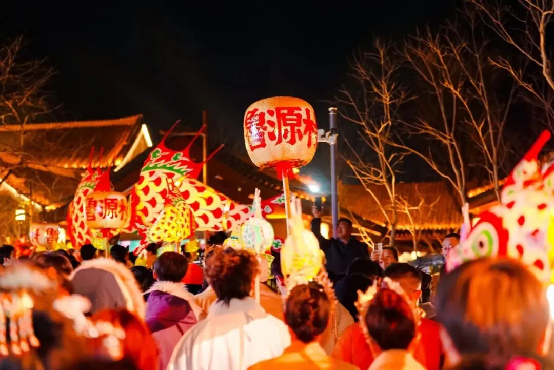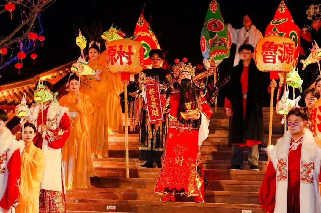 入画鲁源村夜色,财神开路,提一盏小鱼灯加入巡游!化身锦鲤仙女漫步街巷——摸摸鱼头,万事不愁;拂拂鱼尾,欧气加倍!今夜好运拉满,专属于妳的春日浪漫,即刻出发!