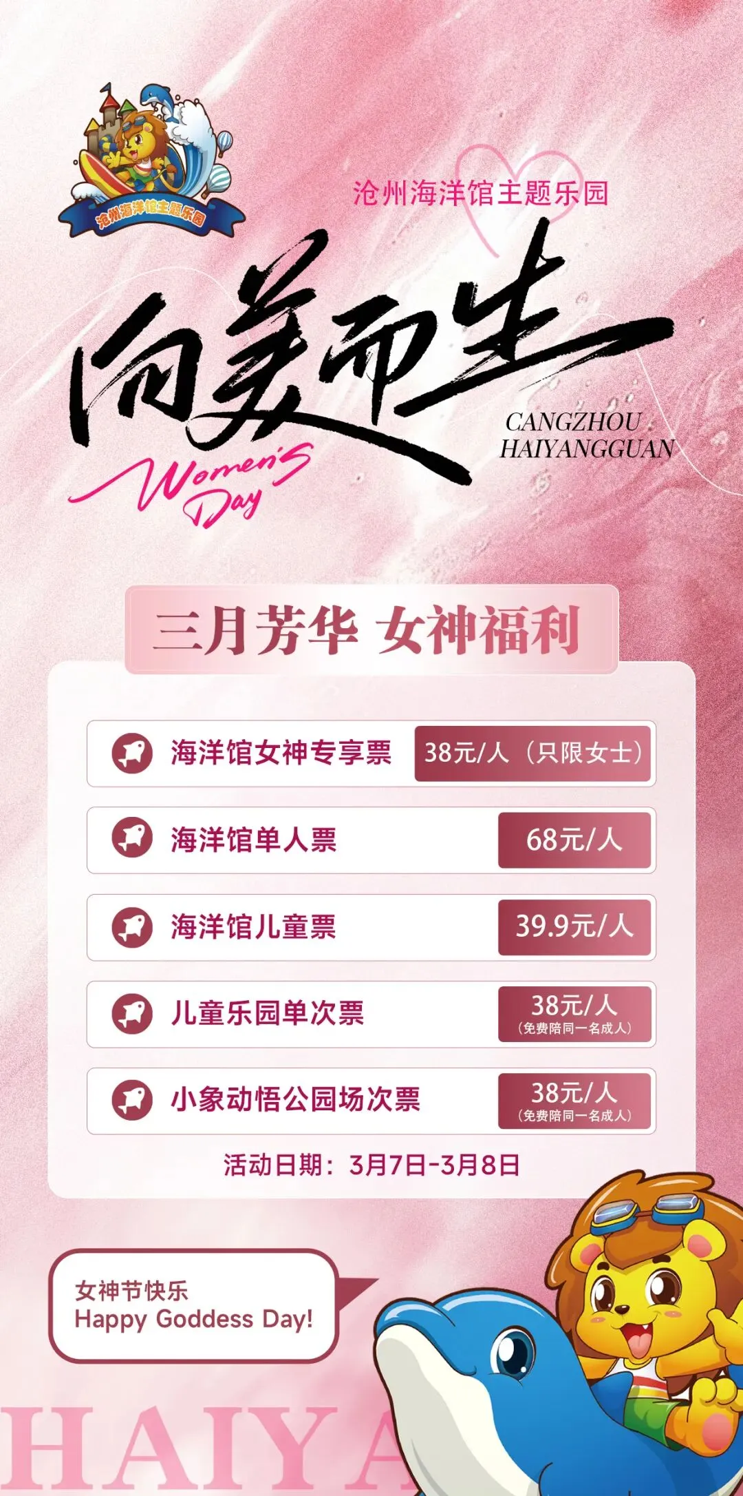 当前位置:首页>美女资讯>沧州海洋馆3.8女神节活动来袭!三月芳华,女神福利!