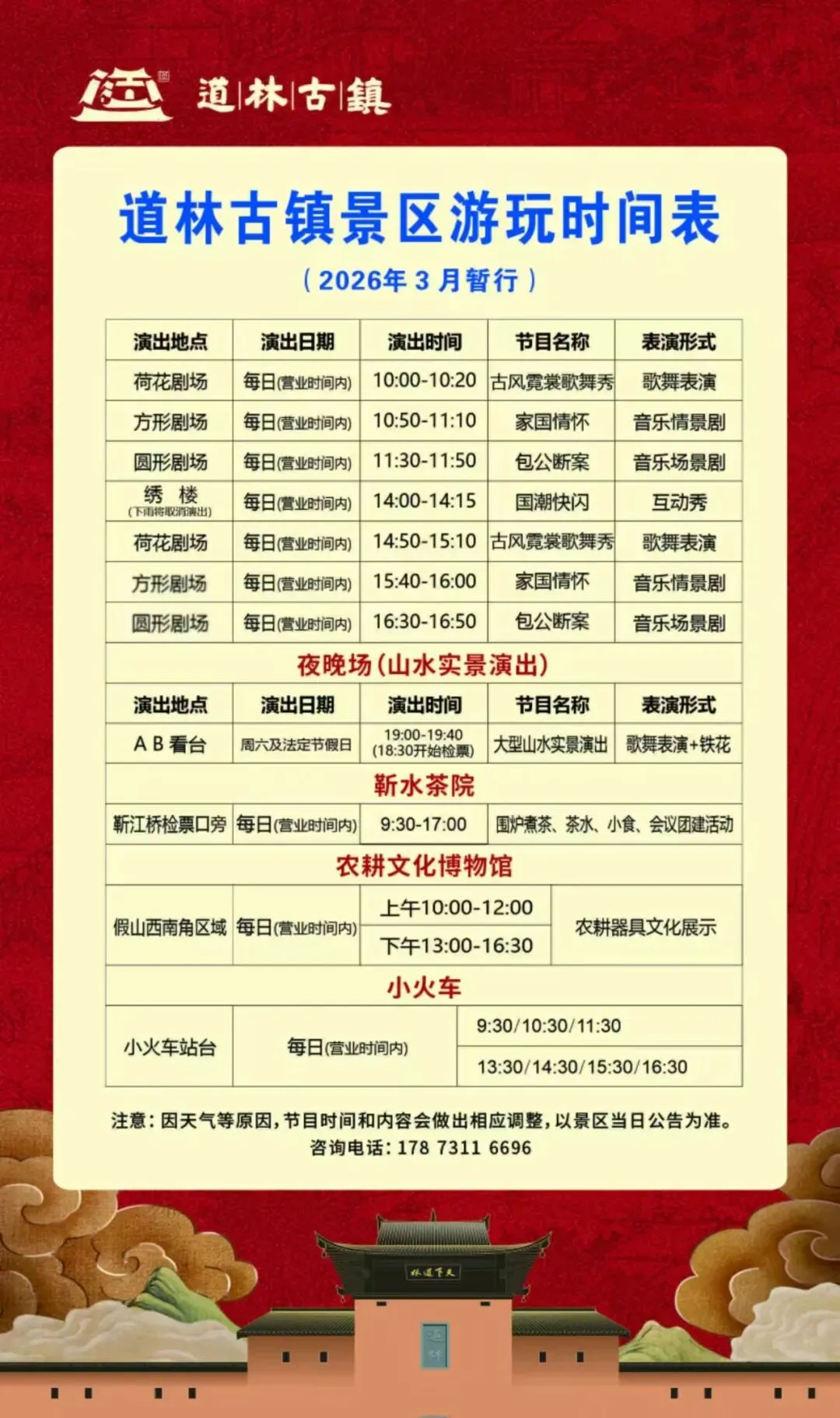 2、取票地址:道林古镇景区西门(检票口处);
