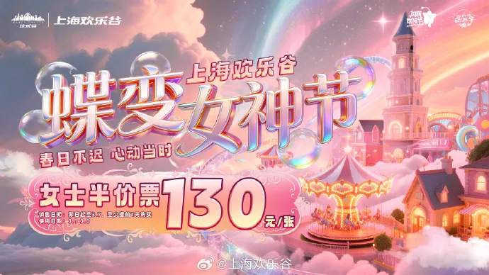 女神节专属福利!上海各大景区乐园特惠、半价、免票来袭→
