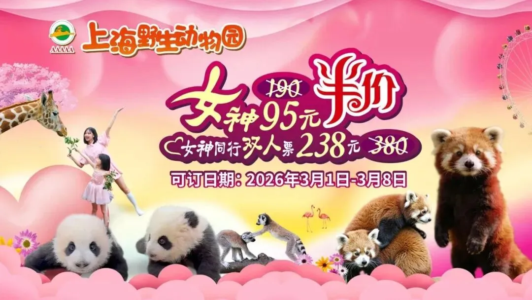 三八国际妇女节将至,上海野生动物园专属半价福利来袭!多种票型满足不同需求,与动物朋友们来一场春日约会吧。