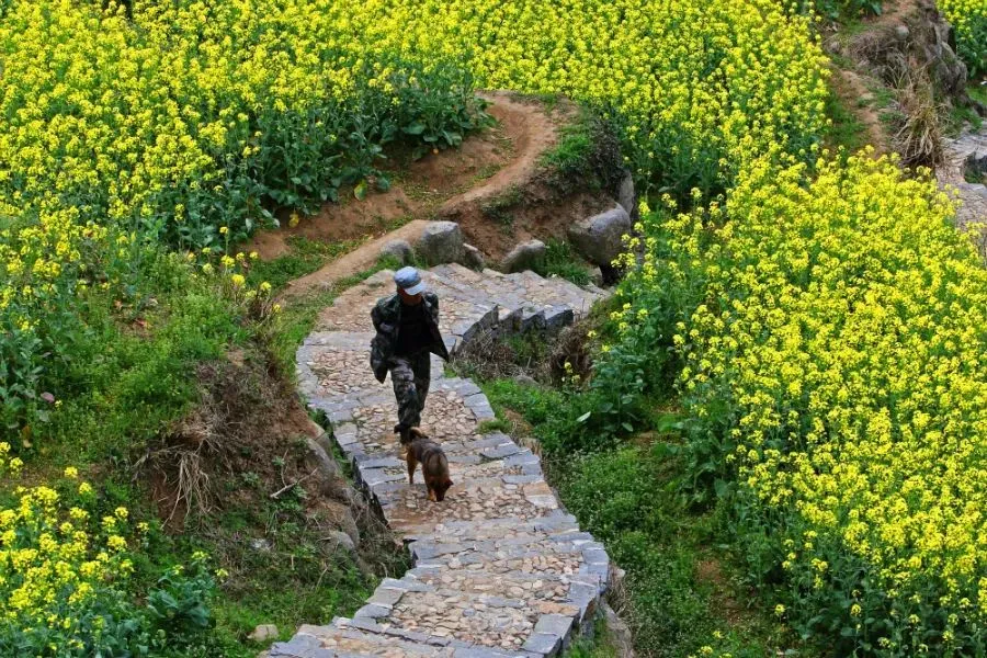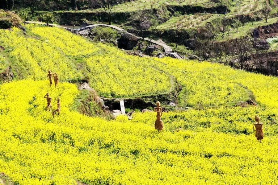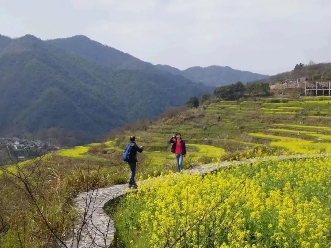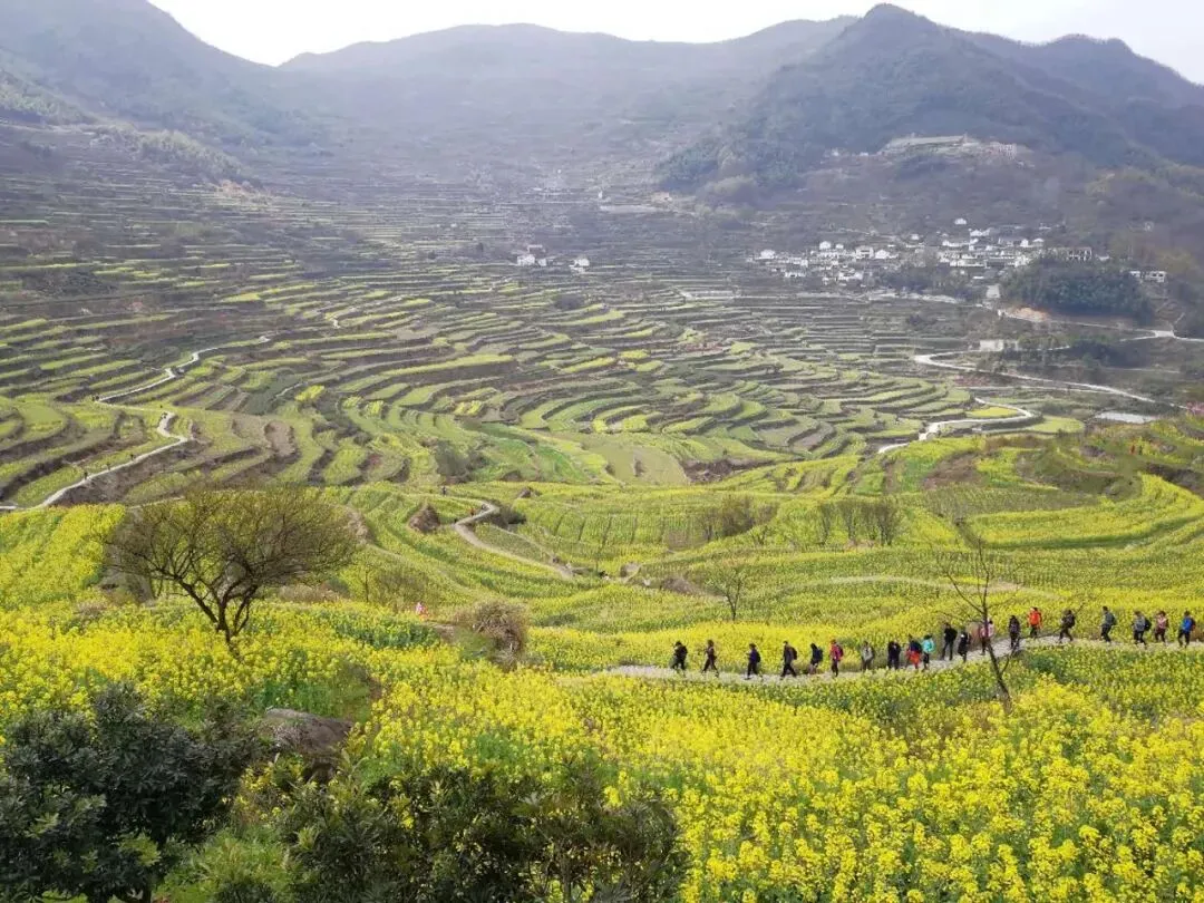 成团余9位,女神节第二人半价【1日徒步赏花】3.7/8/12/14/15赏覆卮山千年梯田油菜花、桃花、古村,勇攀天然石河群【免费使用登山杖】
