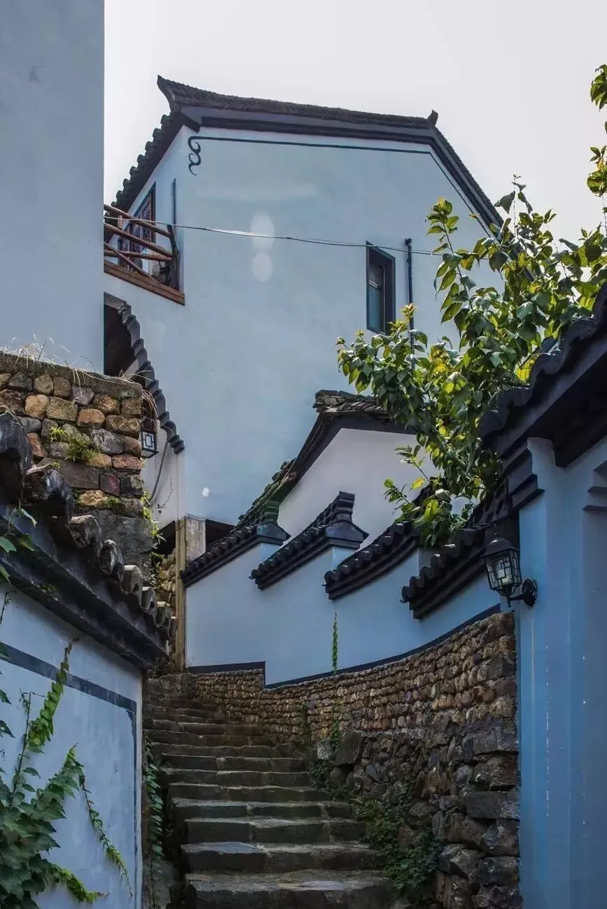 山谷中满满的全是梯田,足足环绕180度,景观台旁边就是东澄古村,依山而建的房屋错落有致,青墙石瓦,泥壁木门,虽经历百年,仍显得鲜活生动,独具水墨山水画气质。青石台阶蜿蜒而下,石阶旁依山而下的潺潺溪水,清澈得让人止不住想喝上一口。巷口偶遇农活归来的老妪,不紧不慢,处处洋溢着悠闲的山居气息。