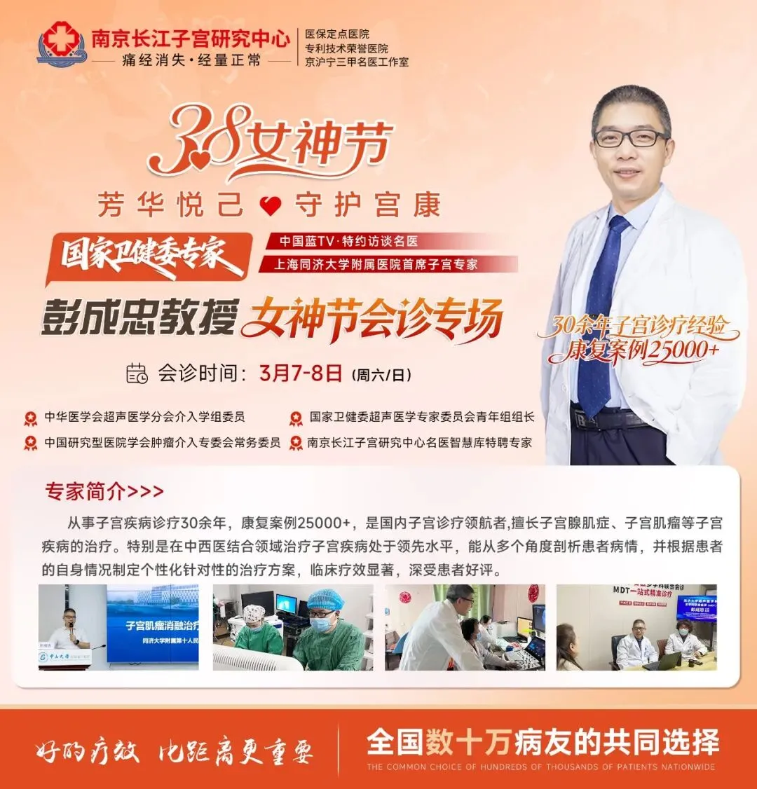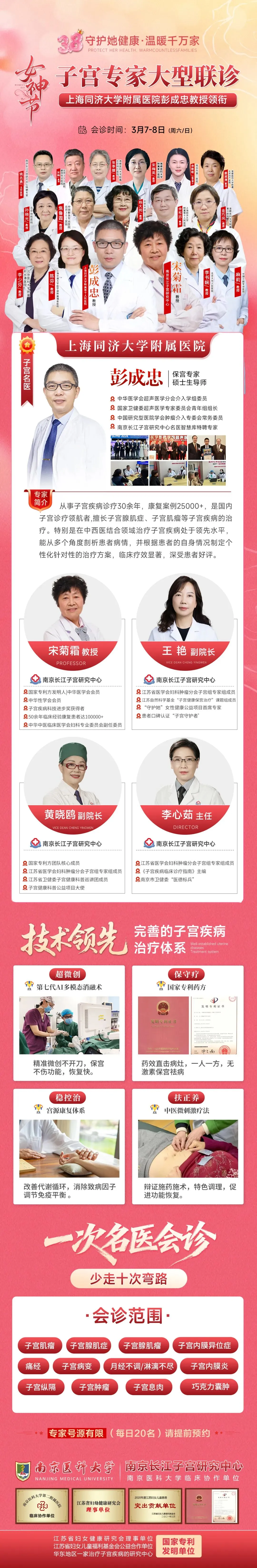 女神节会诊专场 | 3月7日-8日,特邀上海同济十院【彭成忠教授】领衔会诊!沪宁名医联合守护子宫健康!