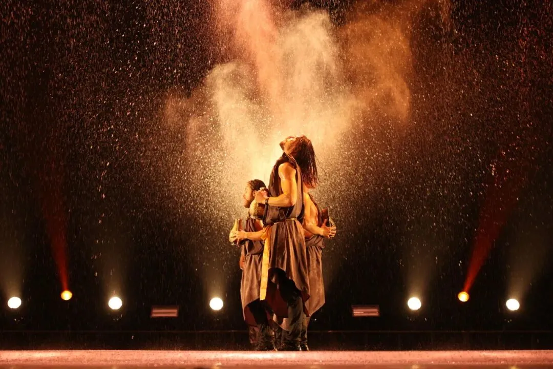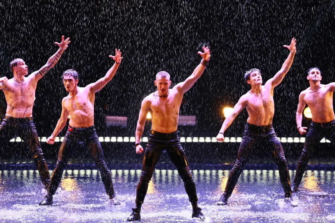 在演出的高潮部分,大雨在舞台上落下,型男艺术家们在飞溅的水花中完成高难度的舞蹈动作,富有表现力的编舞,大胆的技巧展示,专业舞者强大的能量和艺术创造力都会让观众们的尖叫声掀翻屋顶!