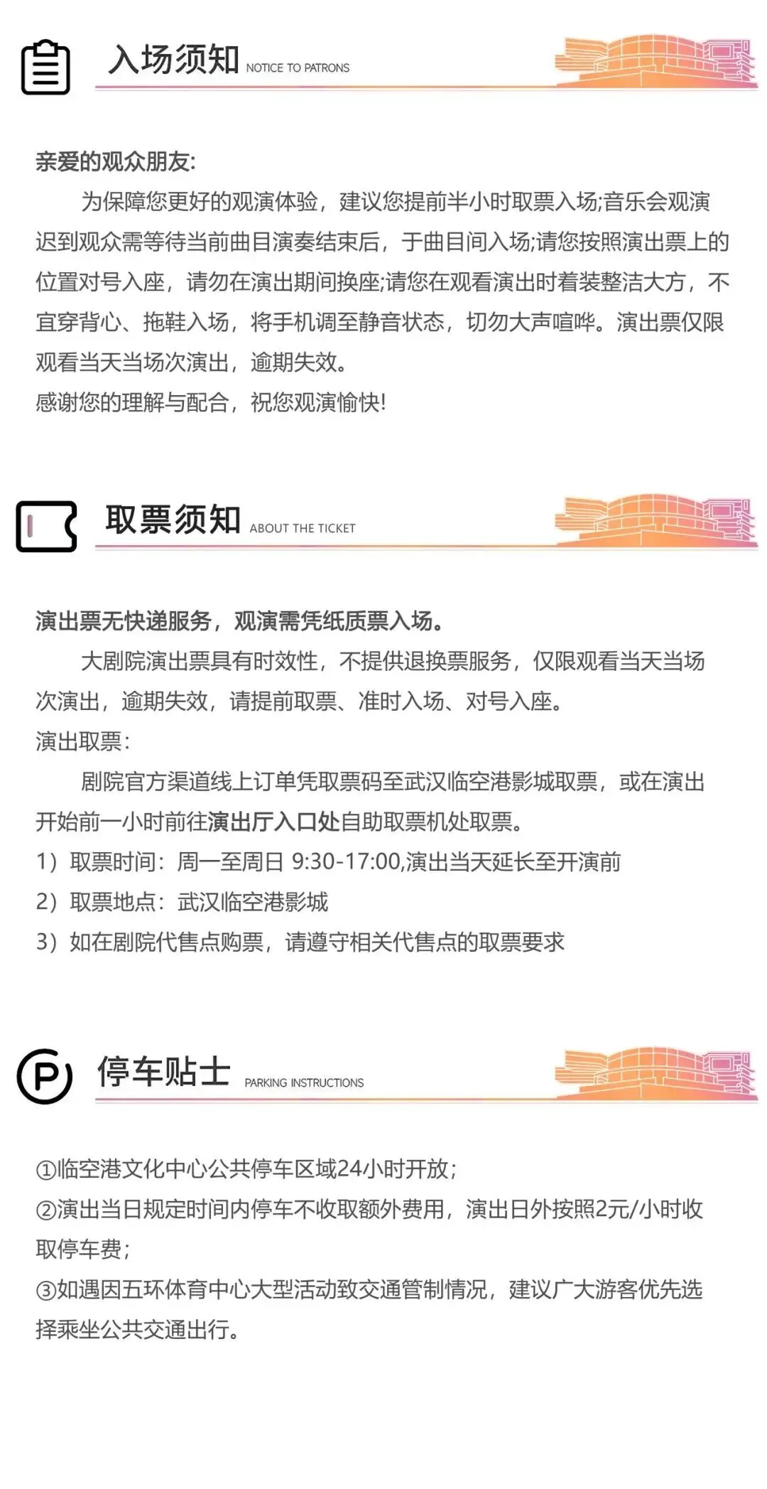 非演出日9:00-17:30凭取票码至武汉临空港影城售票处取票;演出当日开演前一小时可至演出大厅入口处取票。